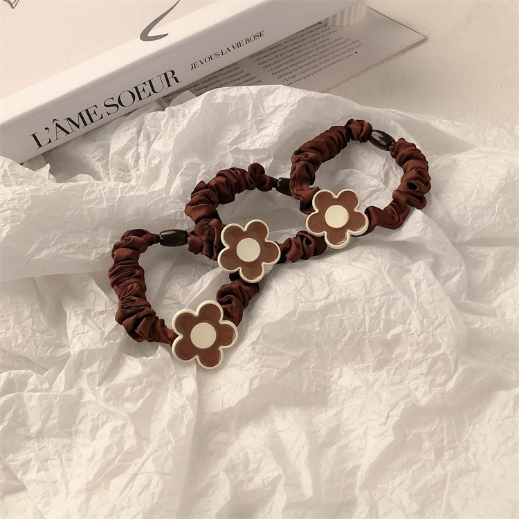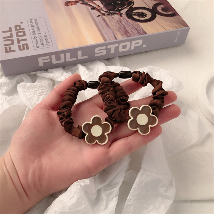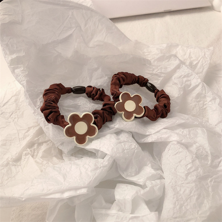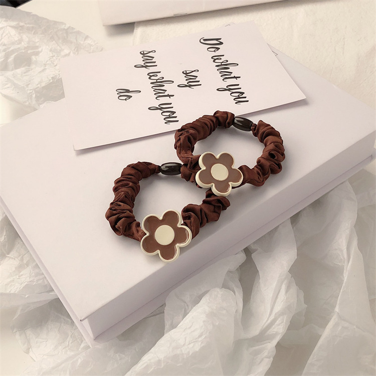 Temperamento simple flor pequeña cuerda de cabello cuerda de cabeza de cabello de la chica de cabello cola de caballo intestino delgado anillo de cabello japonés no estrangulación adornamiento para el cabello