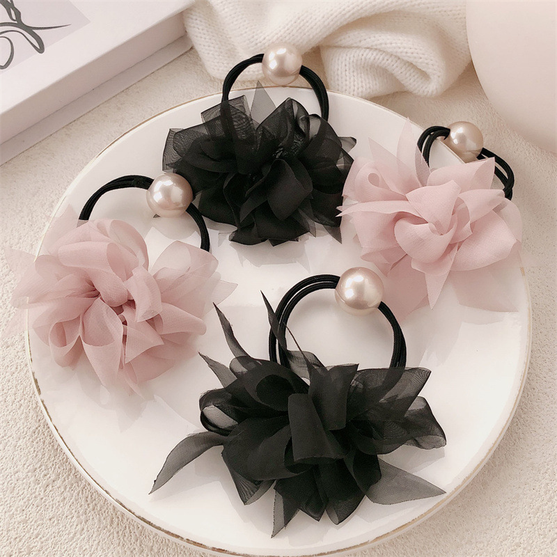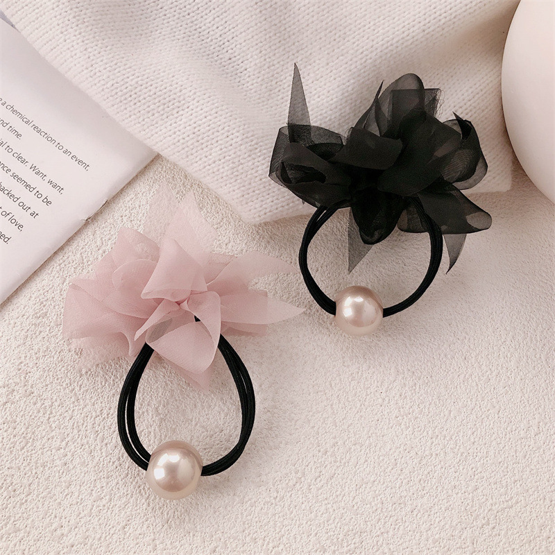 Versión coreana de hilo de malla de alta calidad, cuerda para el cabello de perlas, temperamento noble, cuerda para el cabello de moda, banda de goma de cola de caballo alta, accesorios para el cabello de todo fósforo