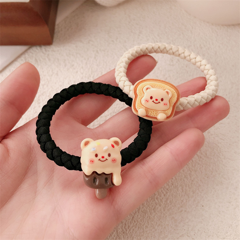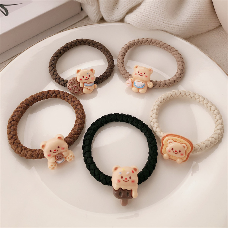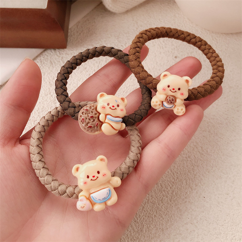 Caricatura encantadora crema oso anillo de cabello de alta elasticidad engrosado oso correa de cabello cuerda de cabello de cola de caballo accesorios para el cabello