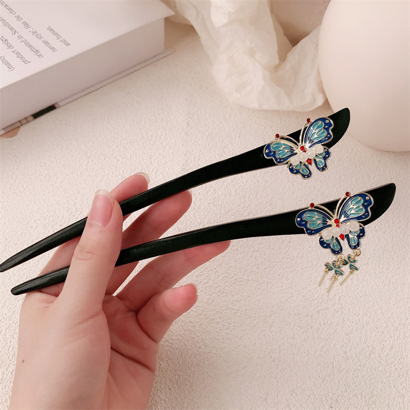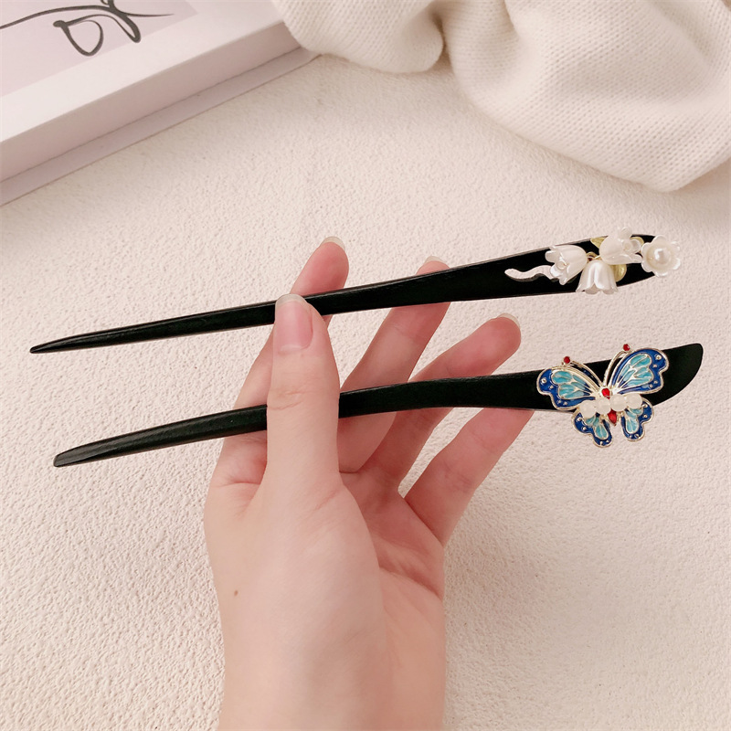 Nuevo clip de madera de estilo chino antiguo clip de cabello de orquídea de campana de estilo chino de alto nivel, vestido de caballo de flores, clip de cabello de cabello