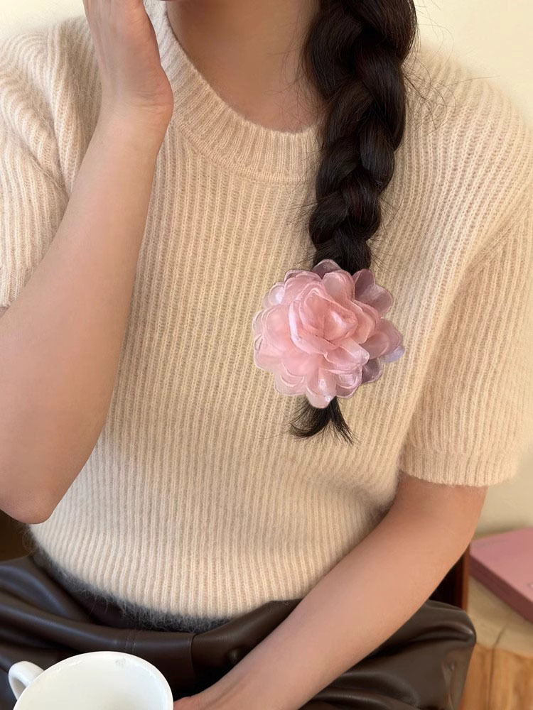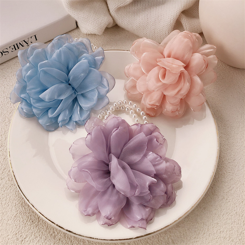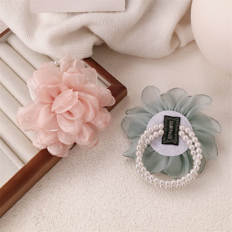 Hijo de malla forest temperamento hermosa flor anillo de cabello femenino temperamento simple cuerdas de cabello cinta de goma alta cola de caballo