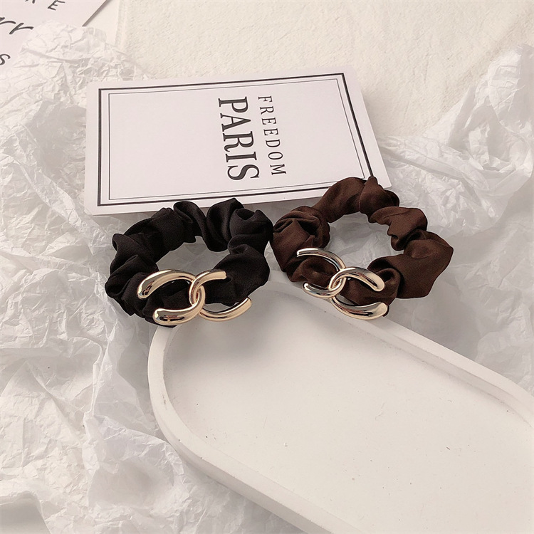 Temperamento coreano red retro oro doble c anillo de intestino corda de cabello simple anillo de cabello de metal cabello de cola de caballo mujer