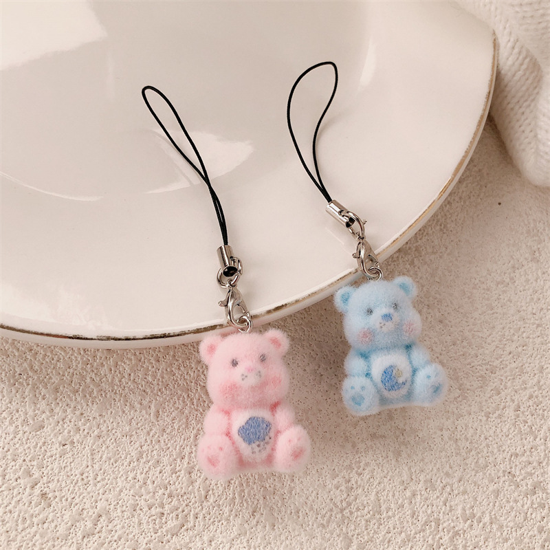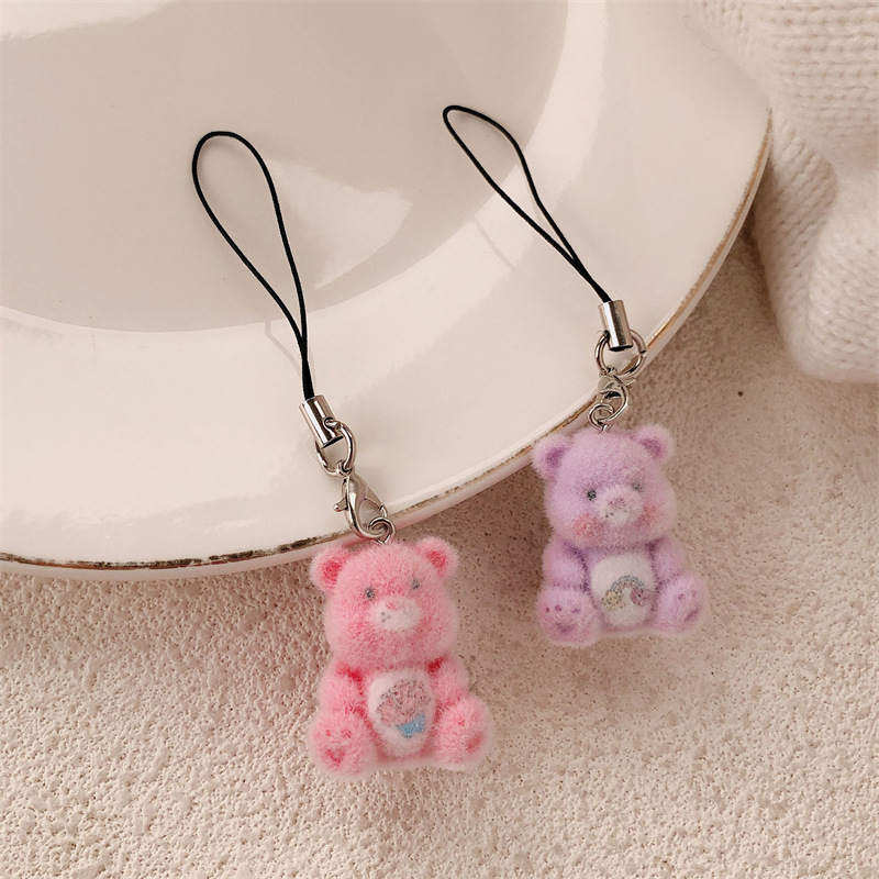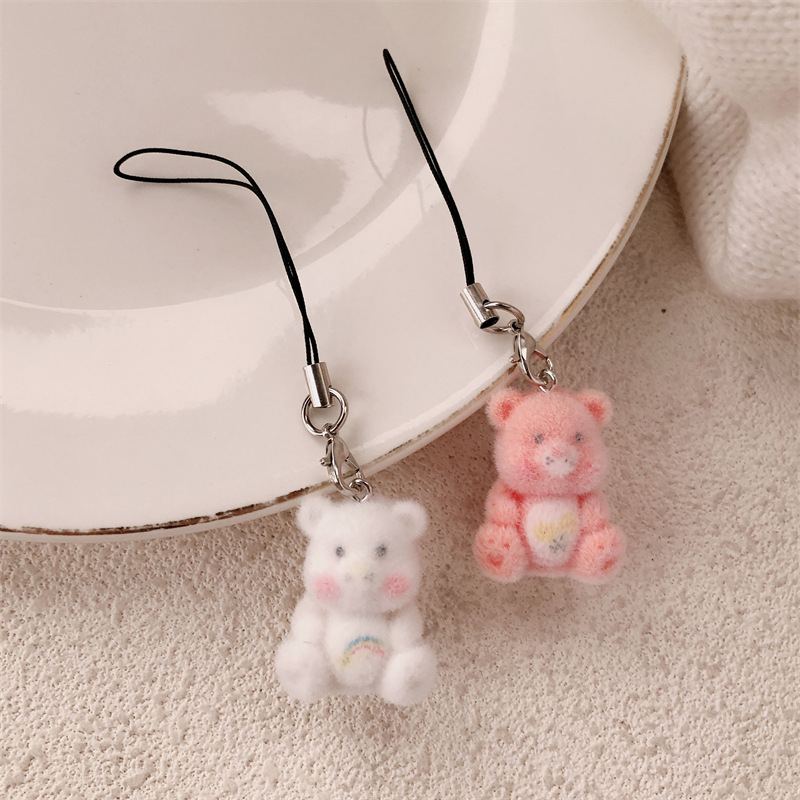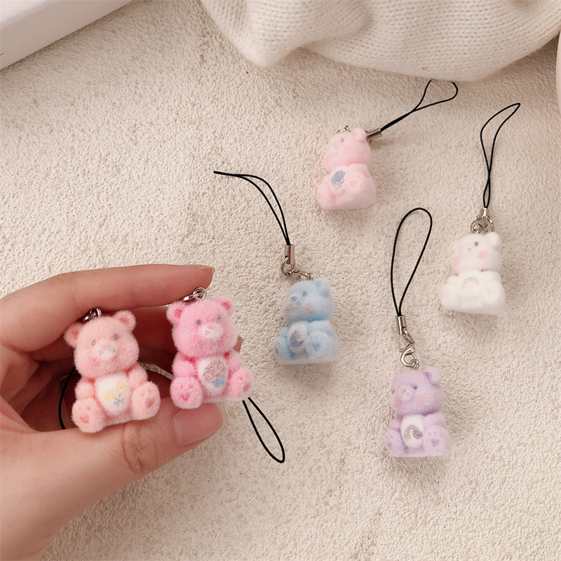 Colgante de oso de dibujos animados tridimensional flocado, cordón de niña linda, bolso de estudiante de felpa, colgante de bolso, colgante de teléfono móvil