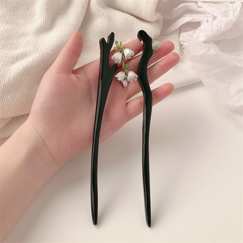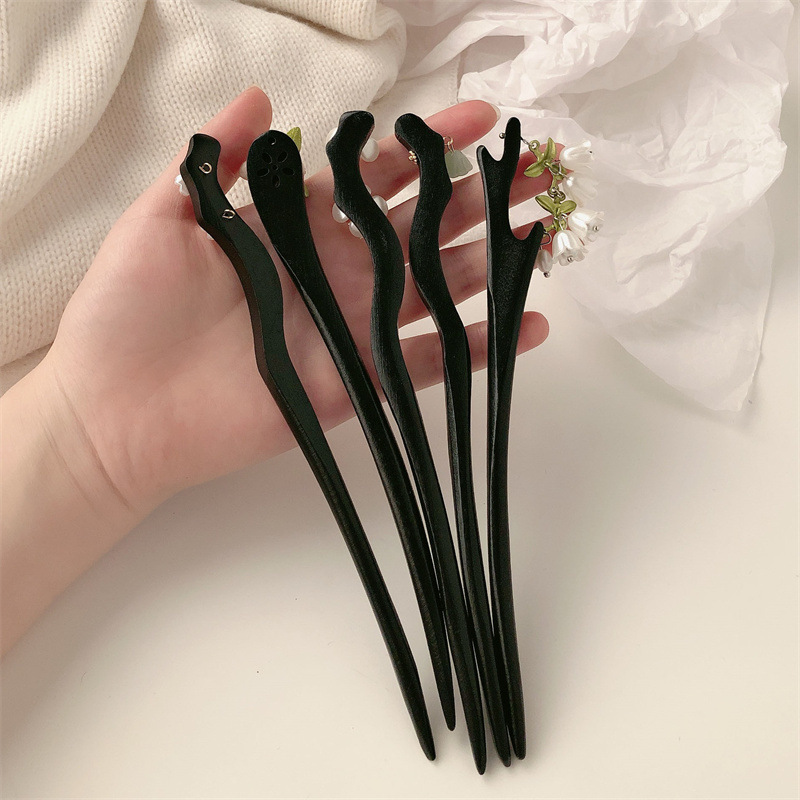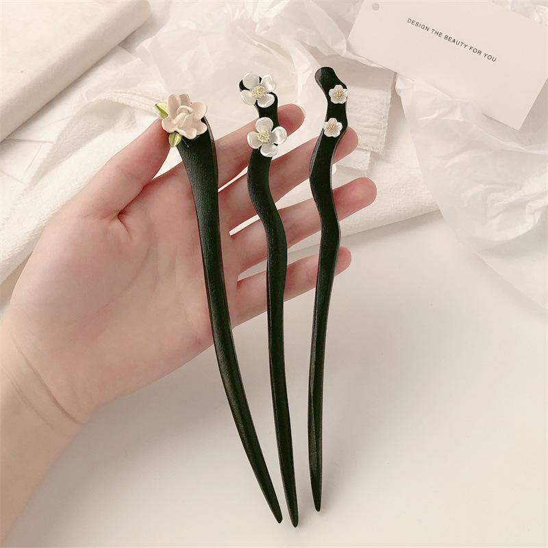 Pin de cabello de madera de sándalo femenino elegante flores de perlas detrás de la cabeza de la caja de cabello artefacto pin de cabello de estilo antiguo pin de cabello de alta calidad
