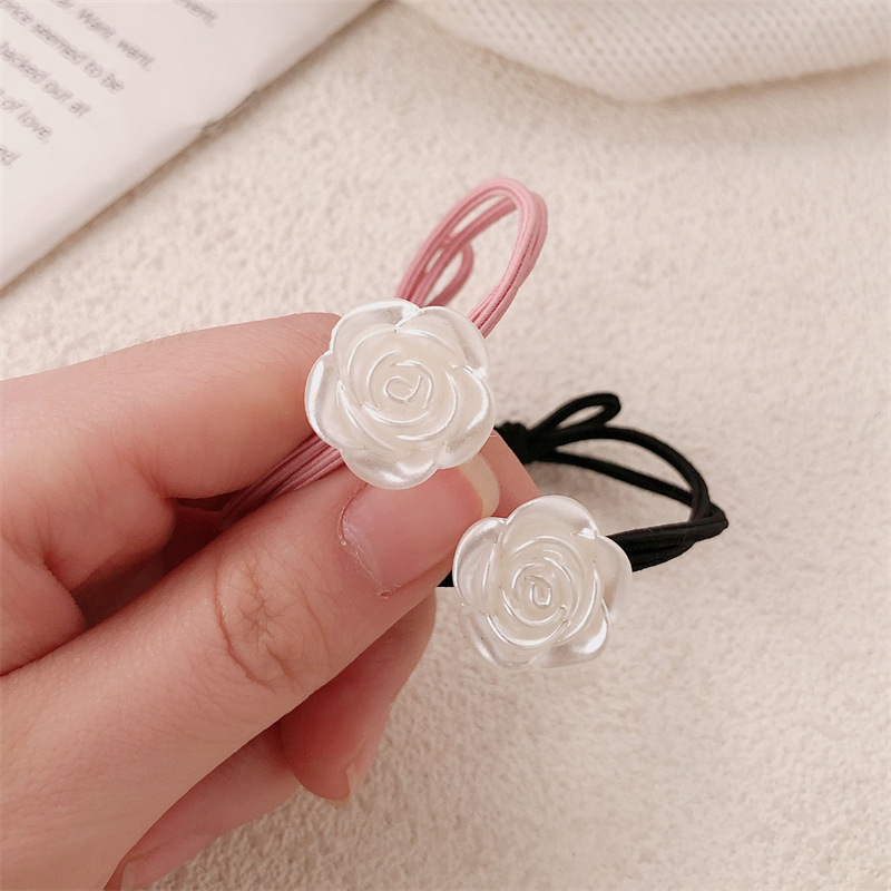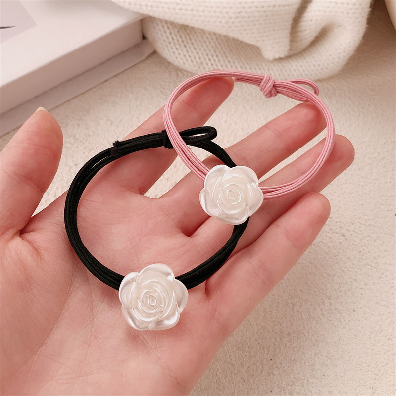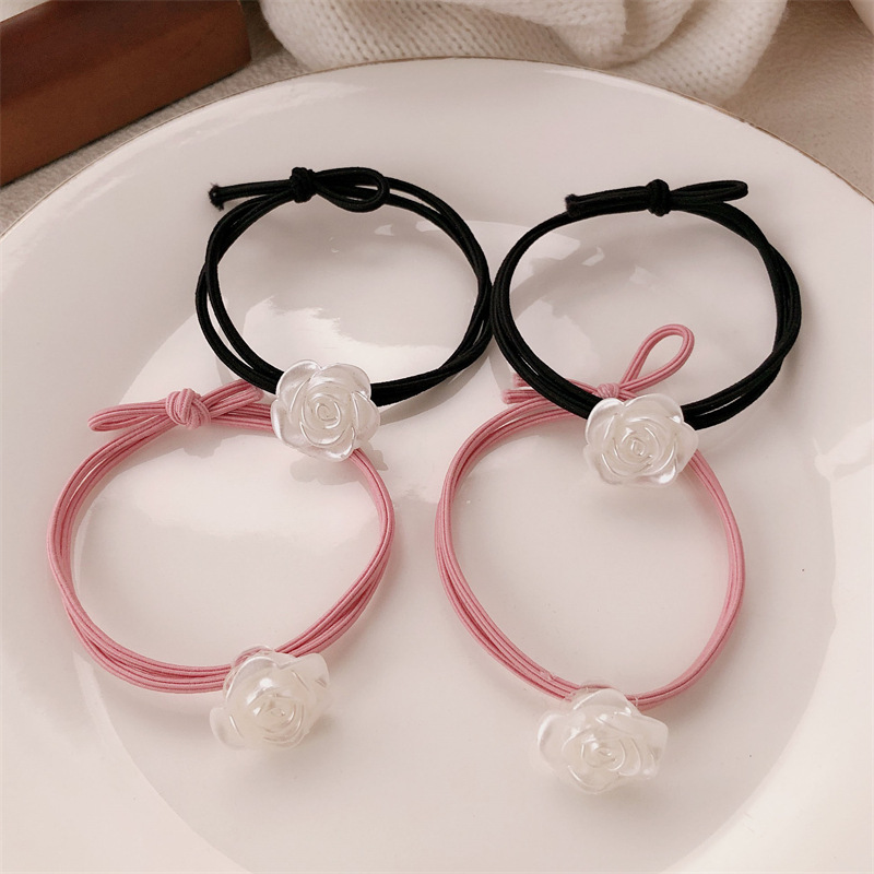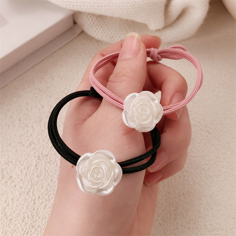 Versión coreana de la cuerda de la cabeza de la camelia accesorios para el cabello niña atar la cabeza temperamento de alta elasticidad rosa banda de goma anillo para el cabello cuerda para el cabello