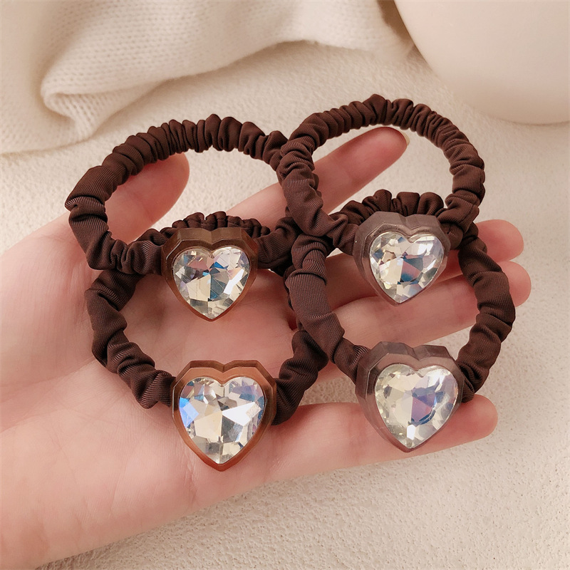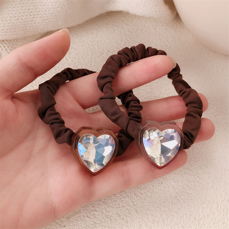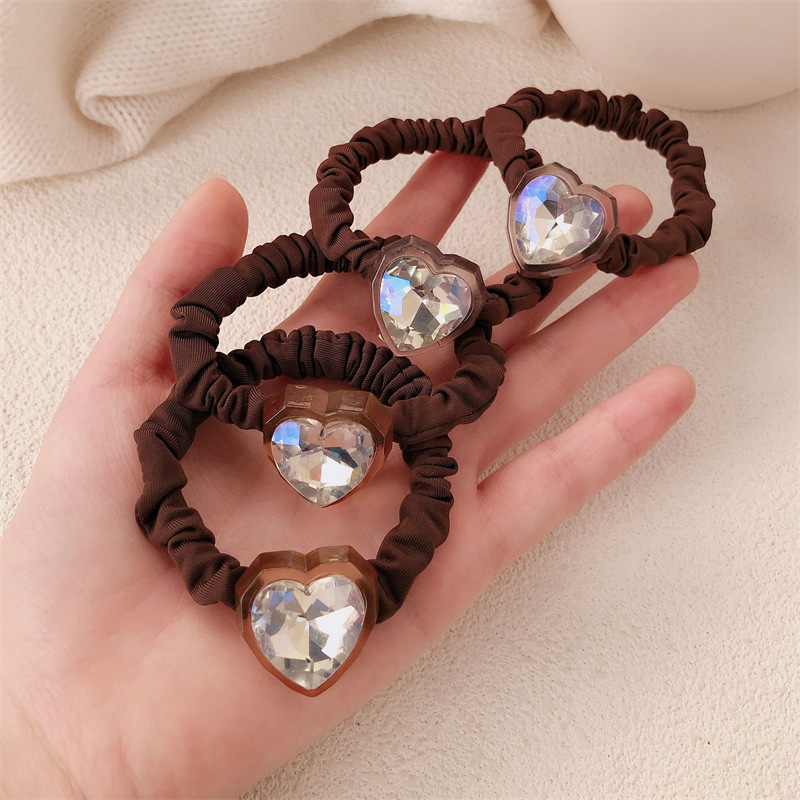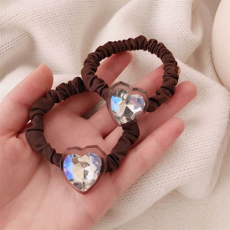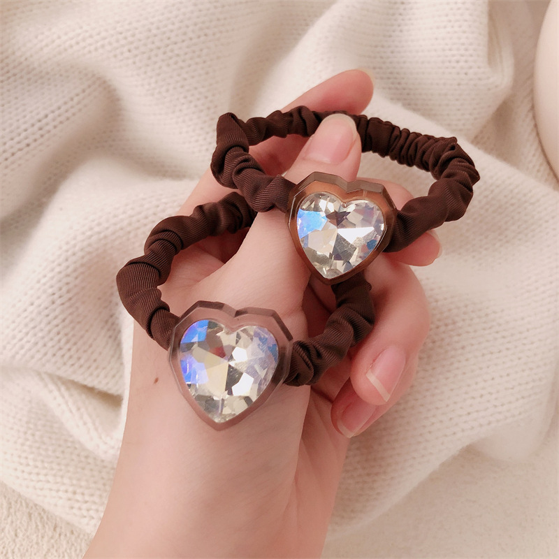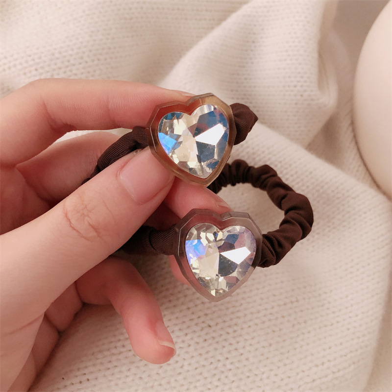 Temperamento retro cuerda de tela negra mujer amor cristal anillo de pelo intestino grueso cabeza detrás de la cuerda de cabello joyas de cabello de cola de caballo