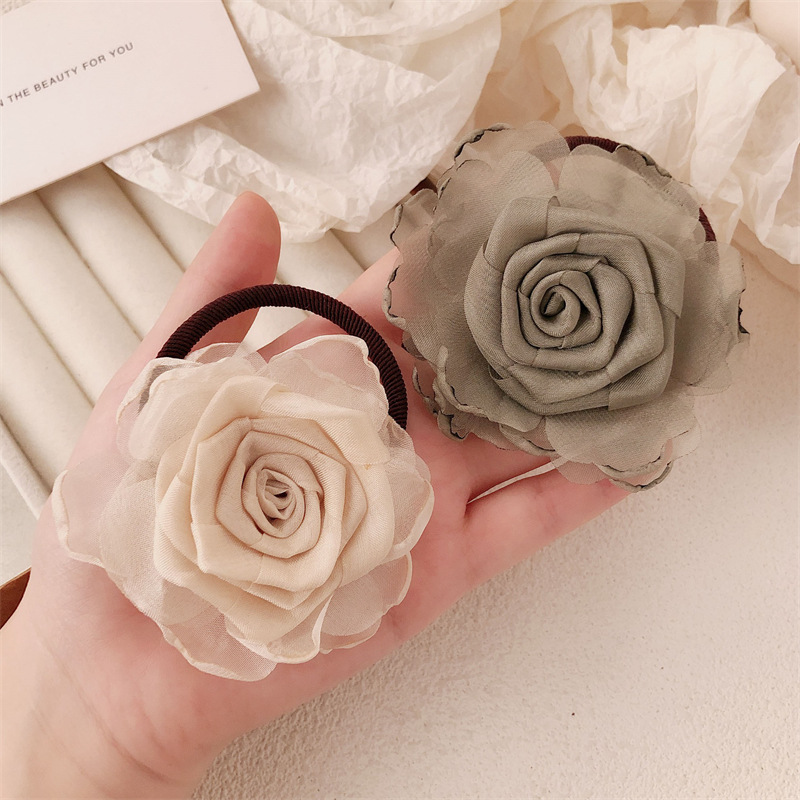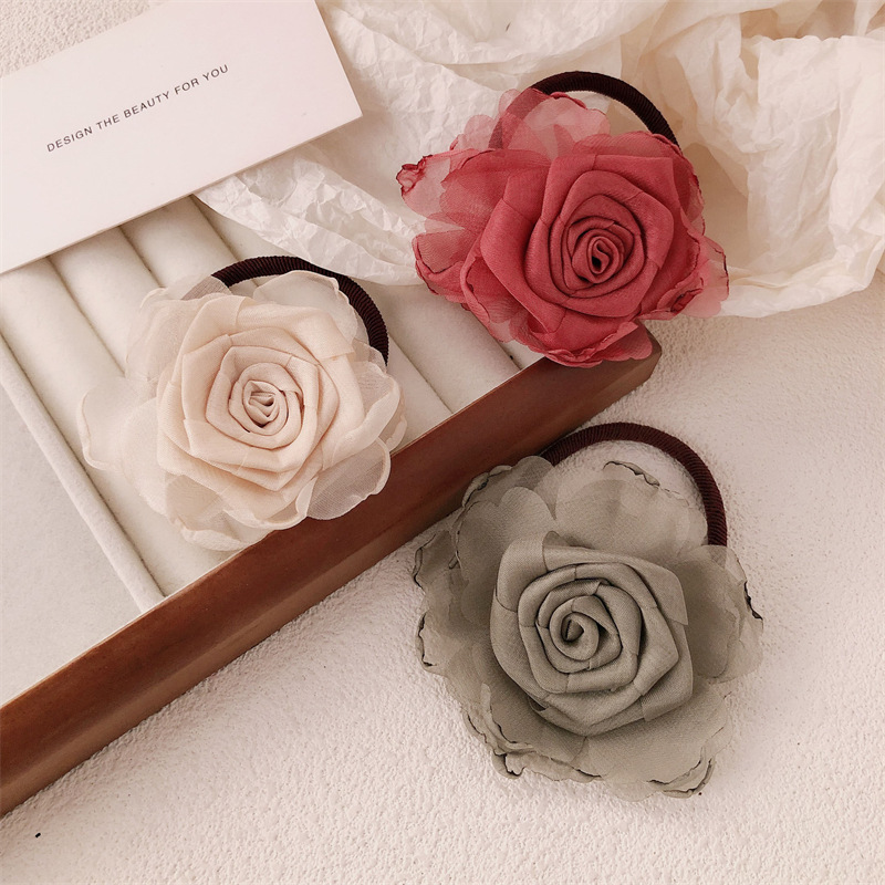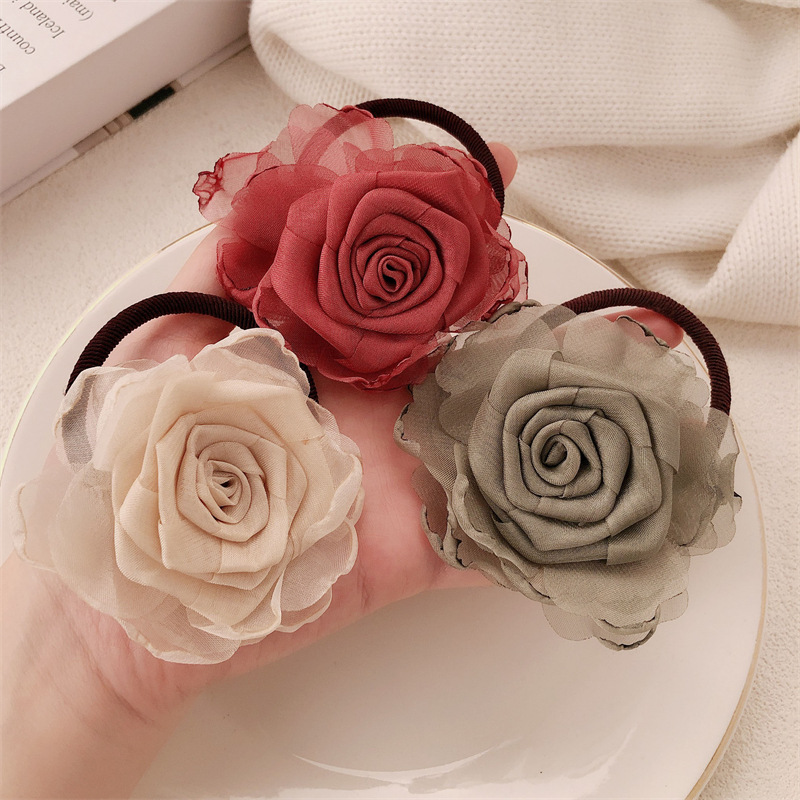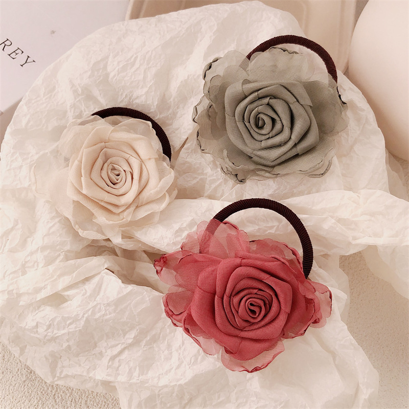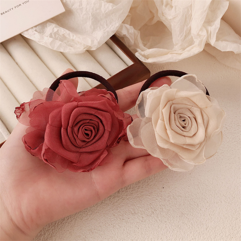 Nuevo estilo chino rosa adornamiento para el cabello femenino de alto nivel camellia nueva cuerda de cabeza de flores medio atado correa de correa anillo de cabello