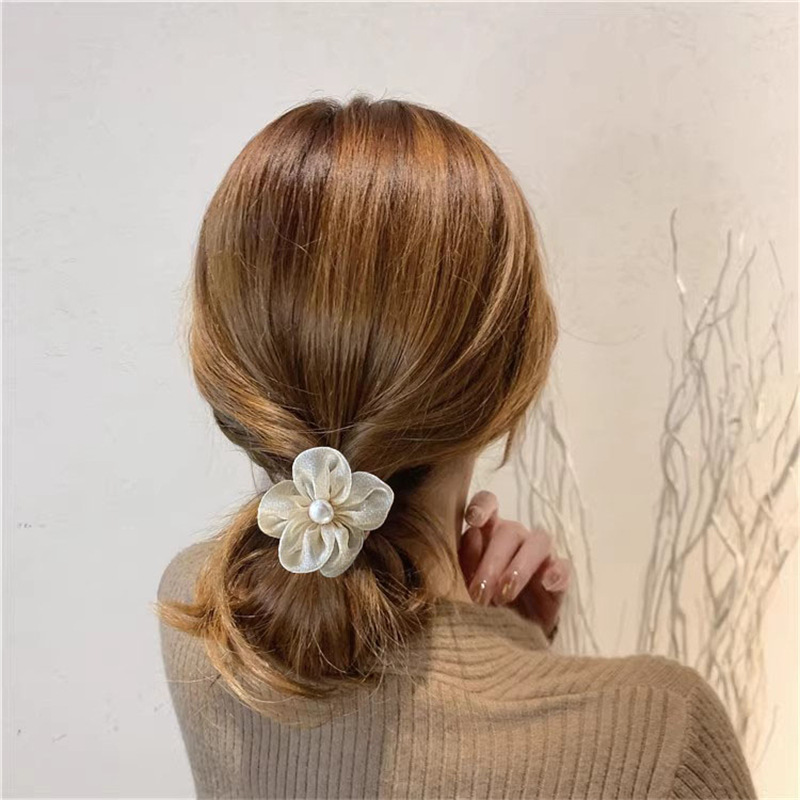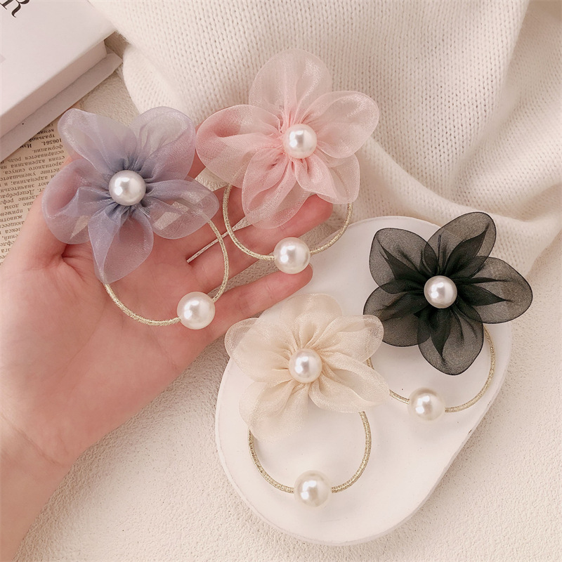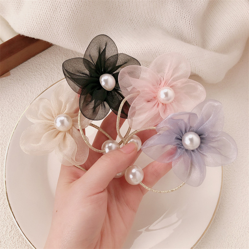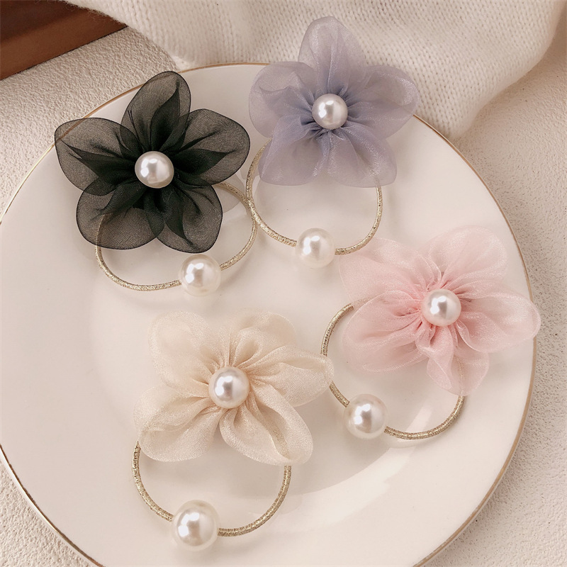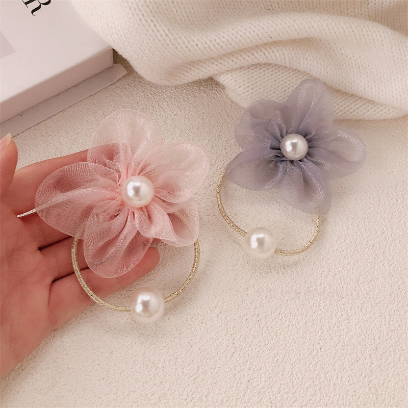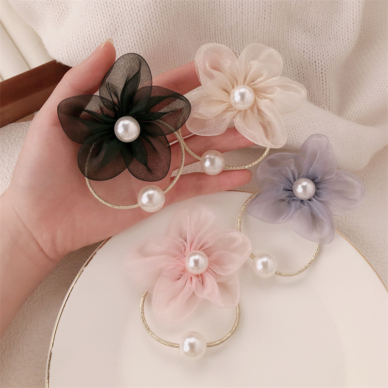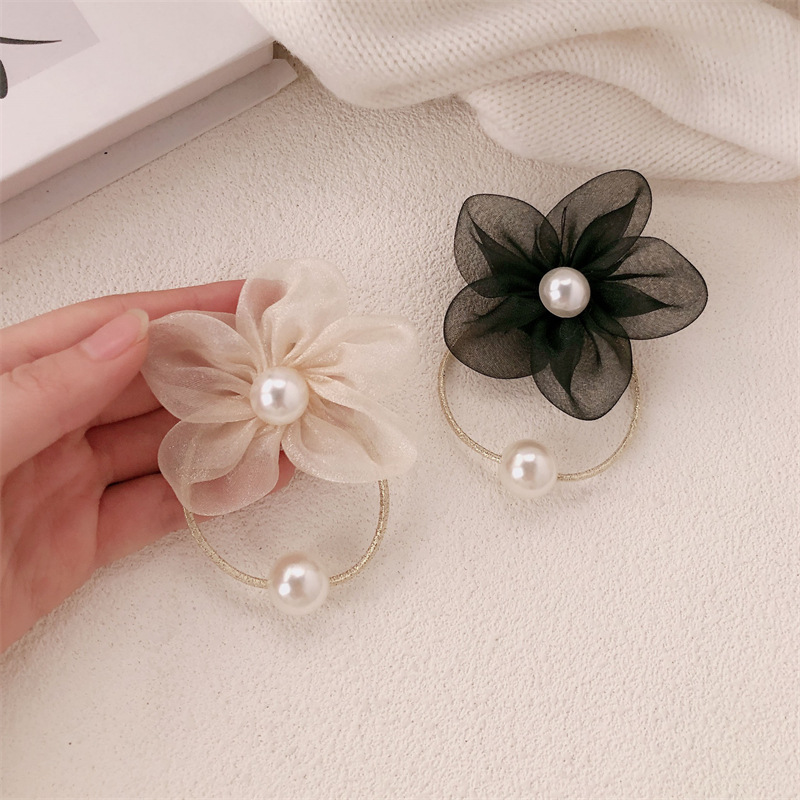 Nuevo hilo de malla de perla flor anillo de cabello de alta sensación de la cabeza de la corda de cabello de la corda de cabello de la cola de caballo temperamento banda de goma adornamiento para el cabello