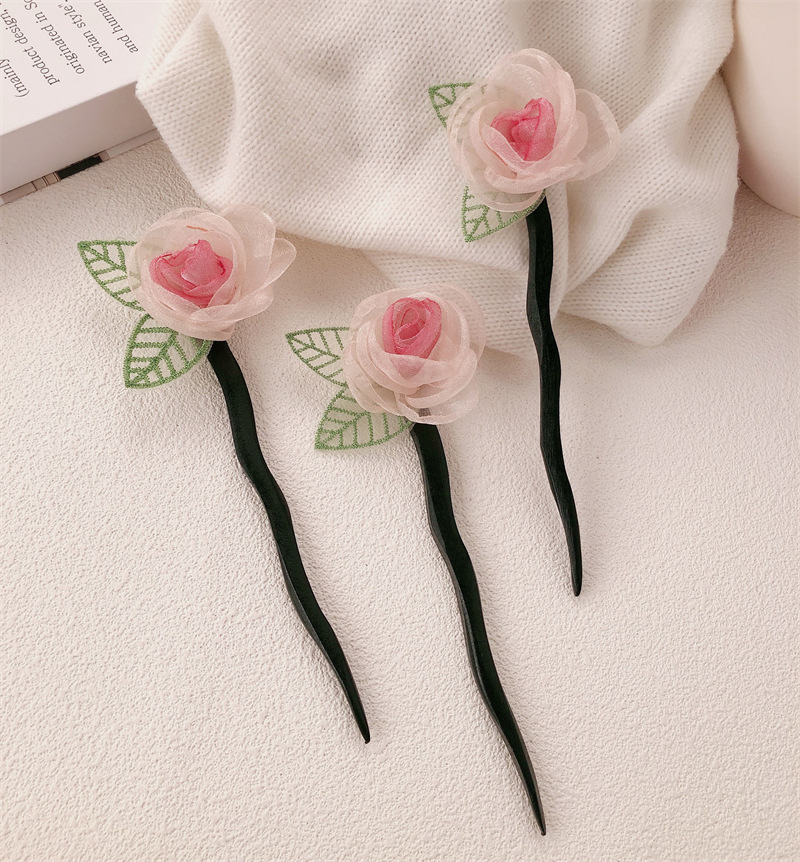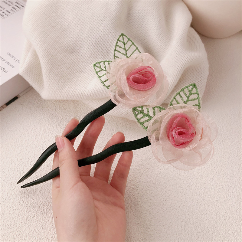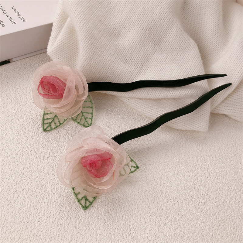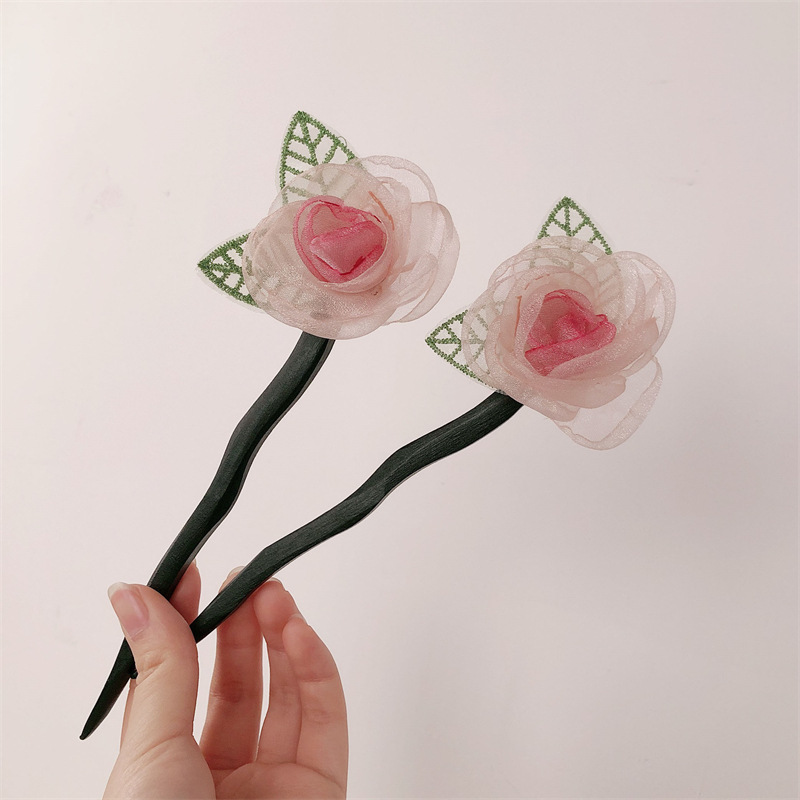 Nuevo clip de cabello chino para mujeres, nuevo estilo, cabeza seca, rosa, clip de cabello de camellia, cabeza de super hadas