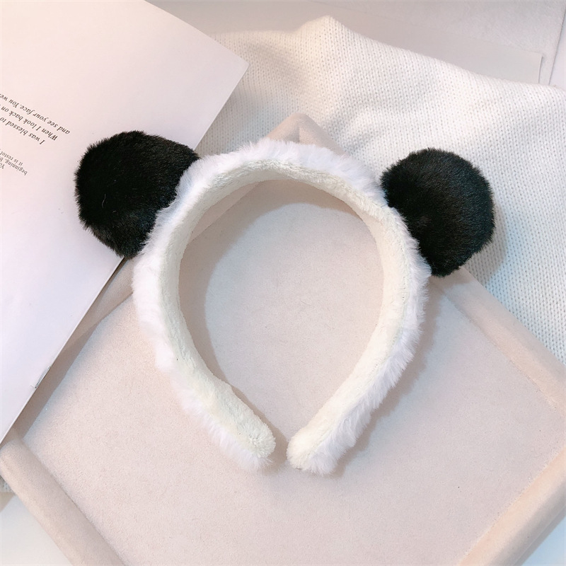 Linda banda para el cabello de panda, lavado de cara femenino, parte superior del cráneo alto, aplicación de máscara de otoño e invierno, diadema de felpa especial para lavar, tocado