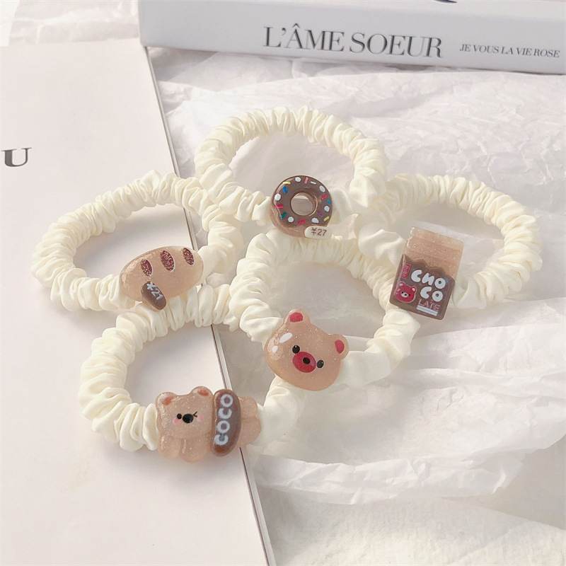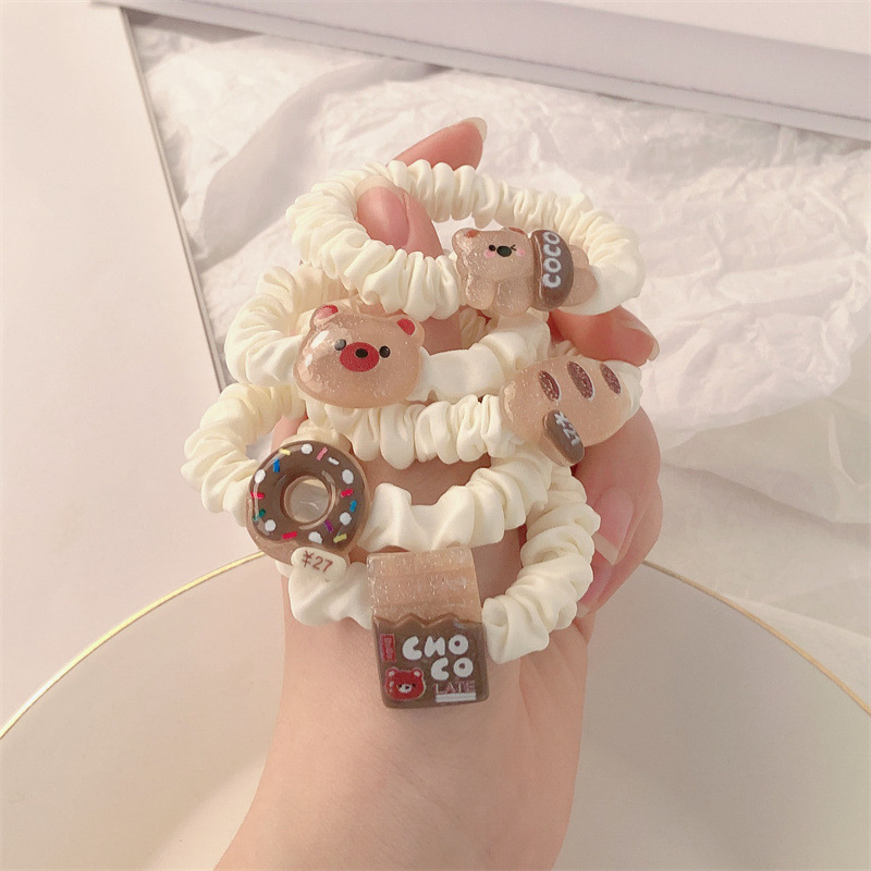 Cute sistema de alimentos donut cuerda de cabeza dulces pan de alta elasticidad banda de goma cuerda para el cabello de la niña intestino delgado anillo para el cabello adornamiento