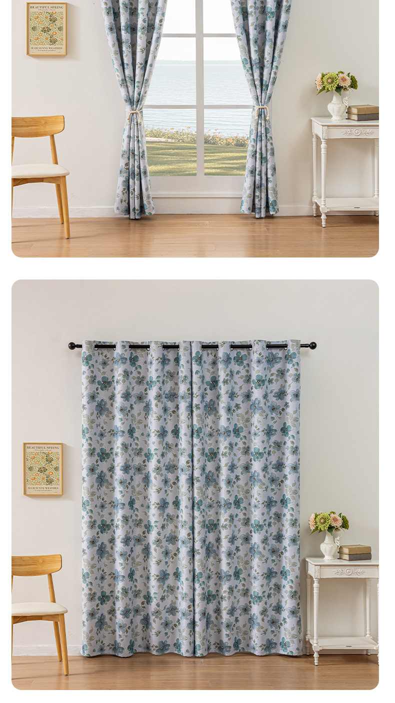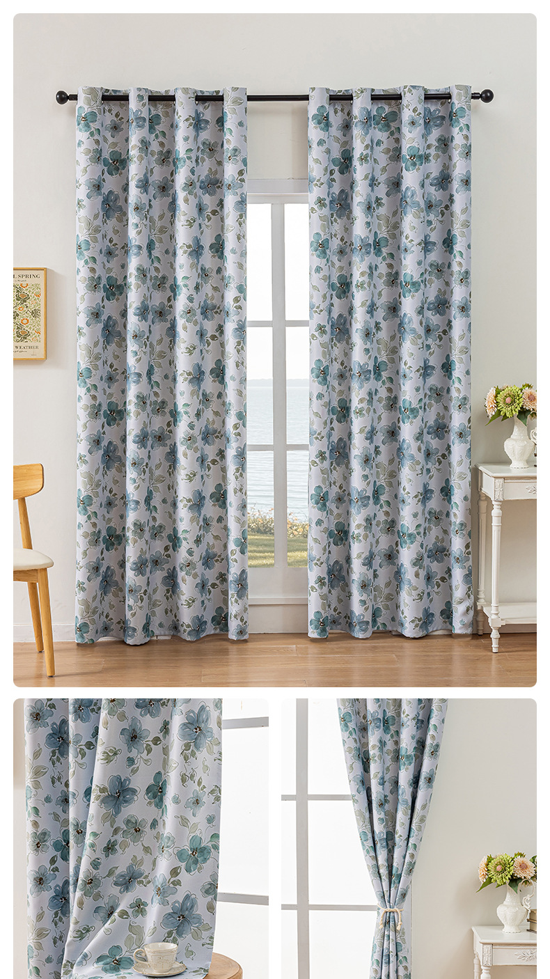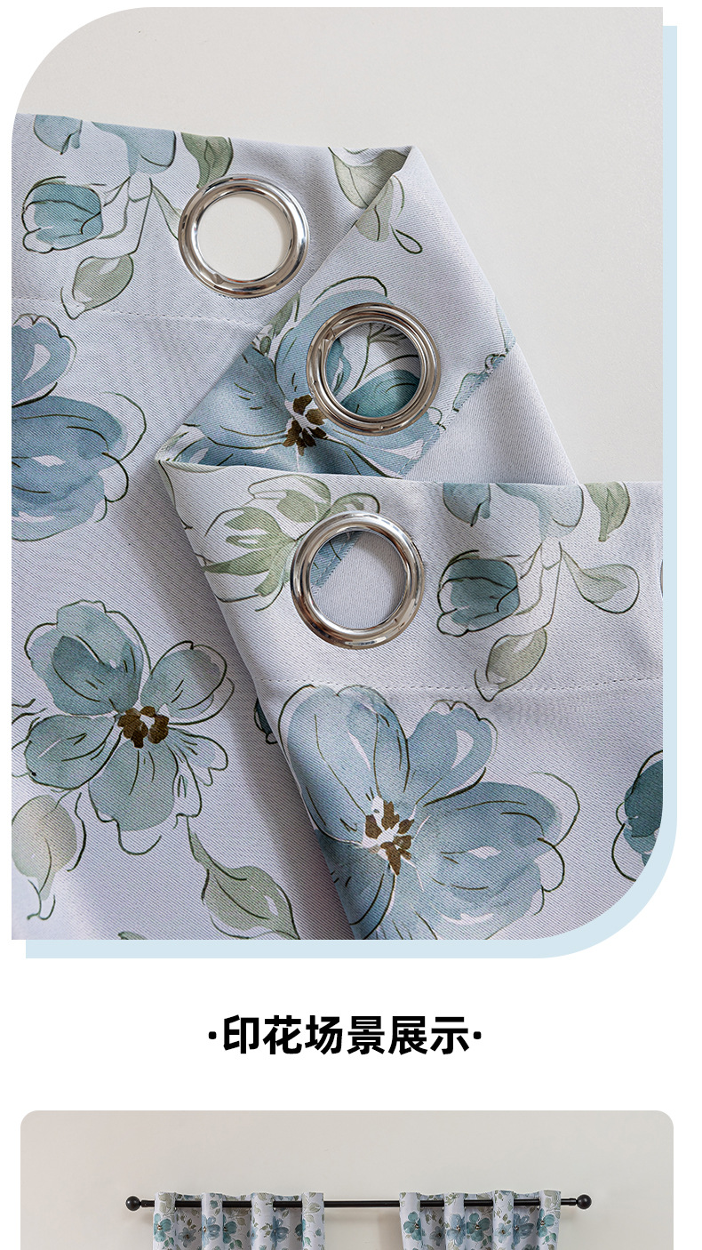 comercio exterior transfronterizo flor impresión anillo cortina azul cortina pequeña Amazon TEMU fábrica directa