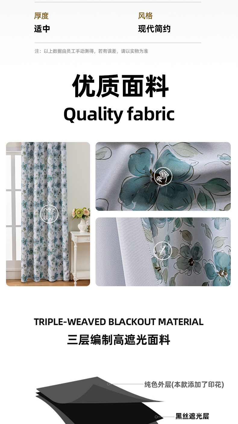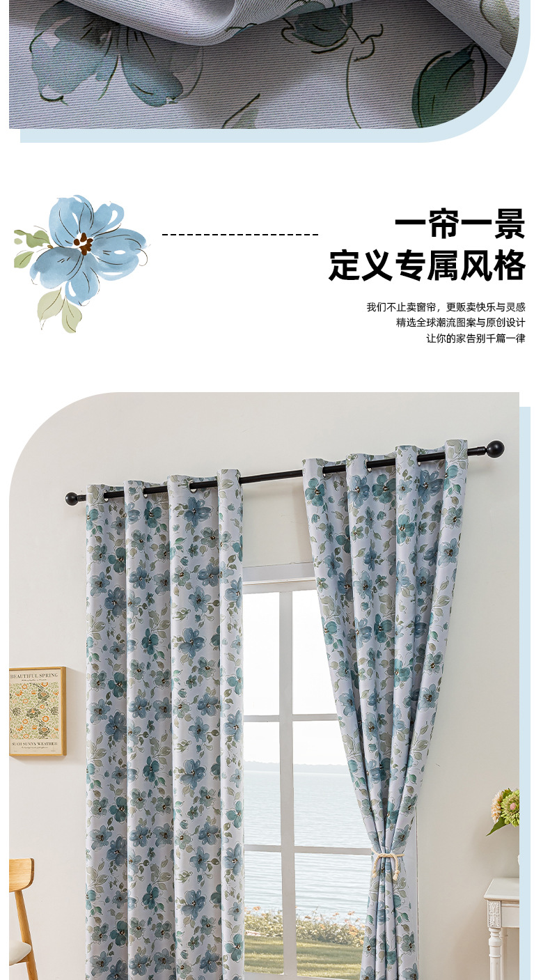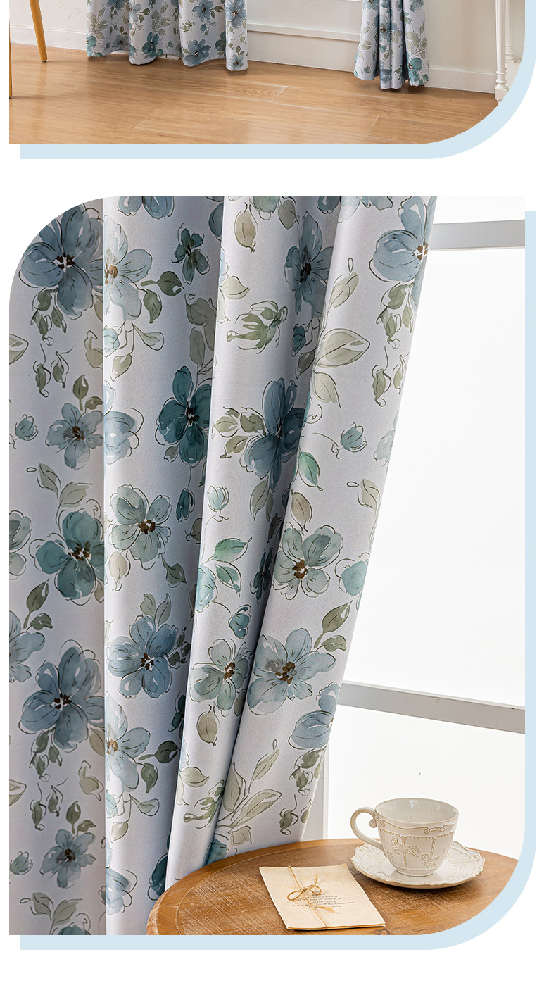 comercio exterior transfronterizo flor impresión anillo cortina azul cortina pequeña Amazon TEMU fábrica directa
