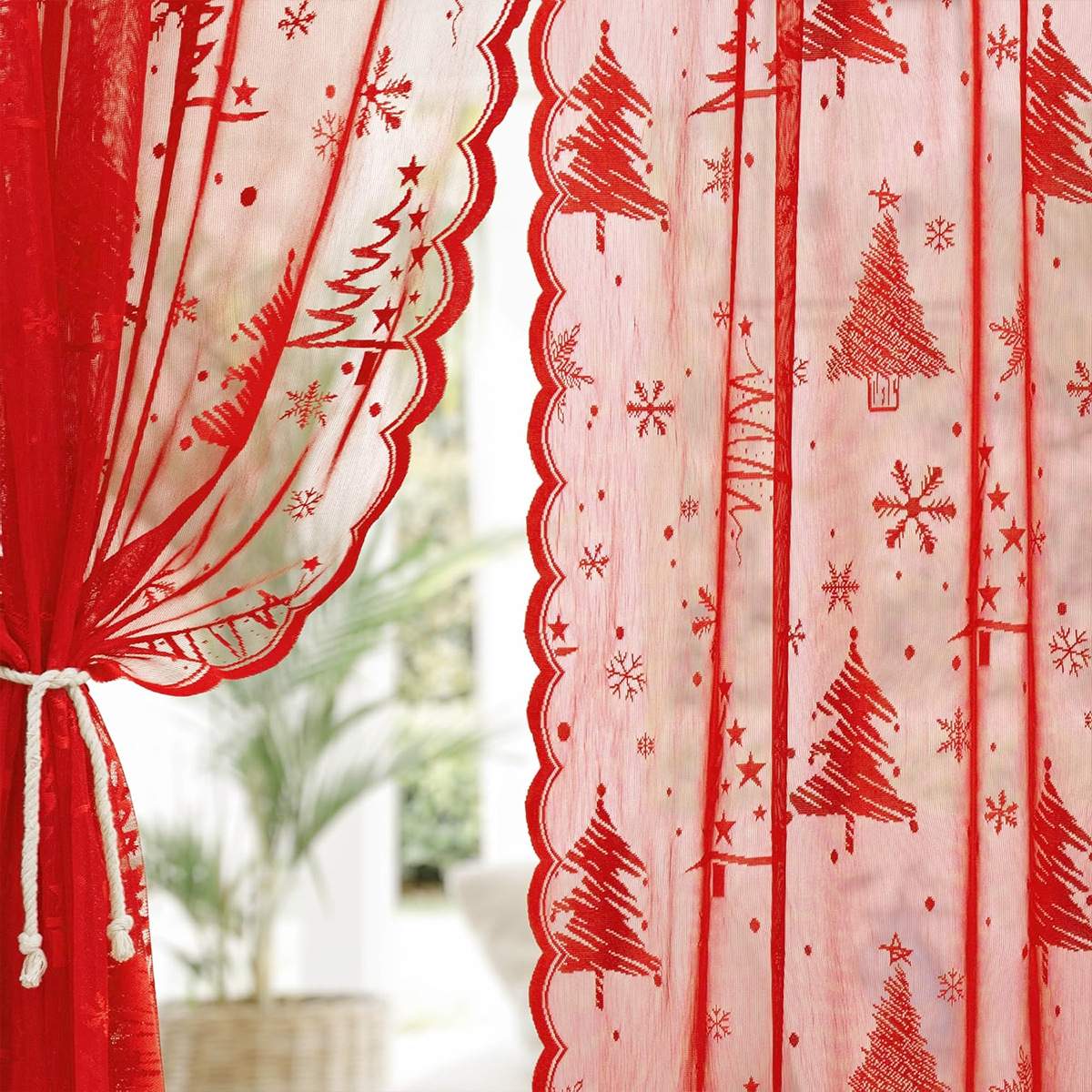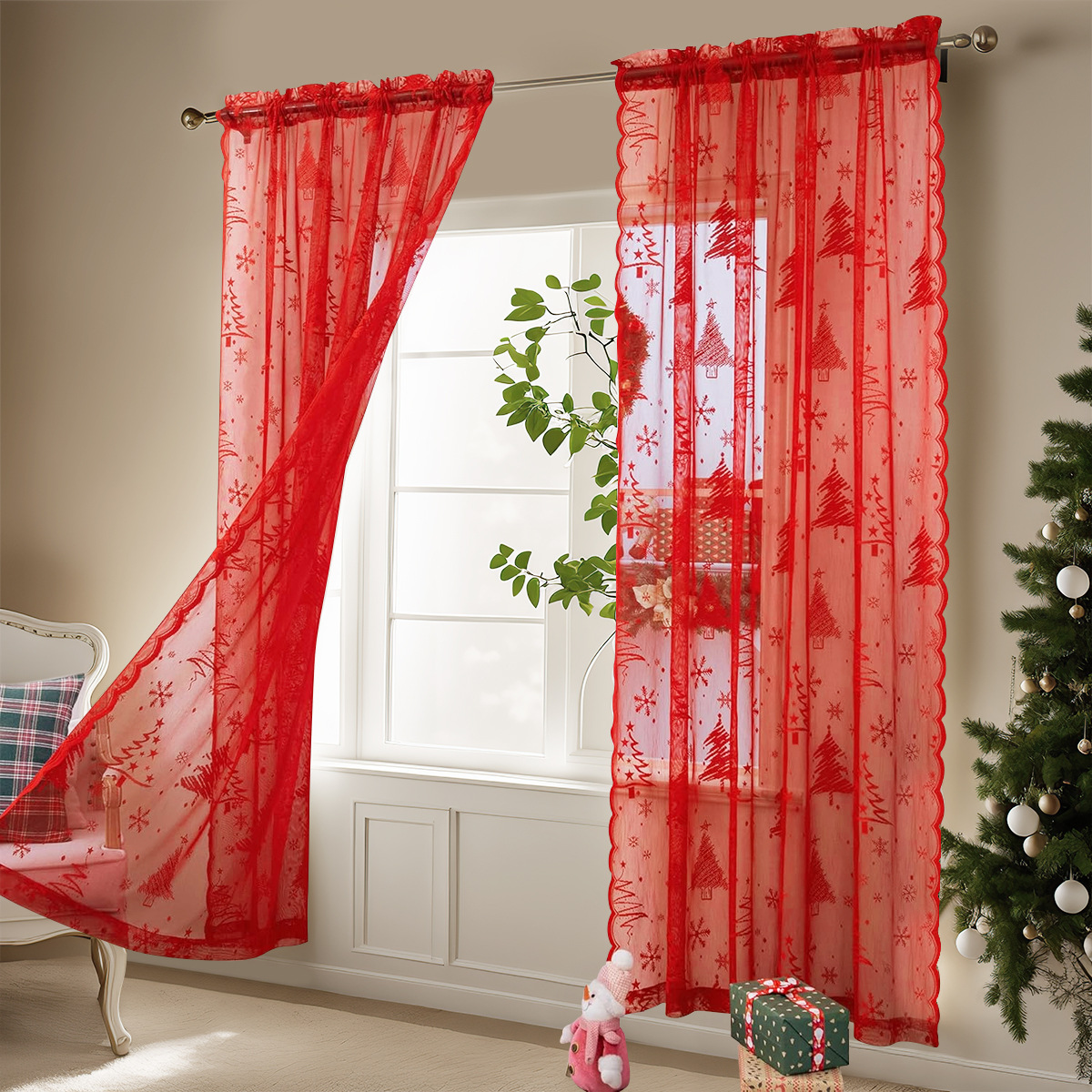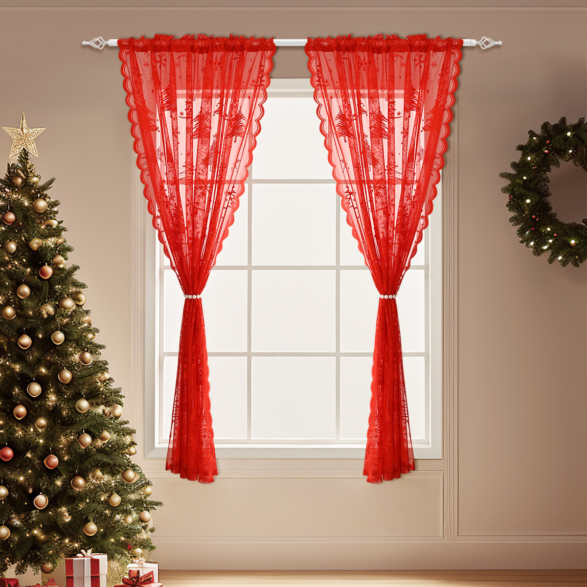 Nuevo árbol de Navidad de hielo transfronterizo cortina de ventana de barra de presión de línea de ventana de Navidad europea y americana cortina de ventana de Navidad TEMU en stock