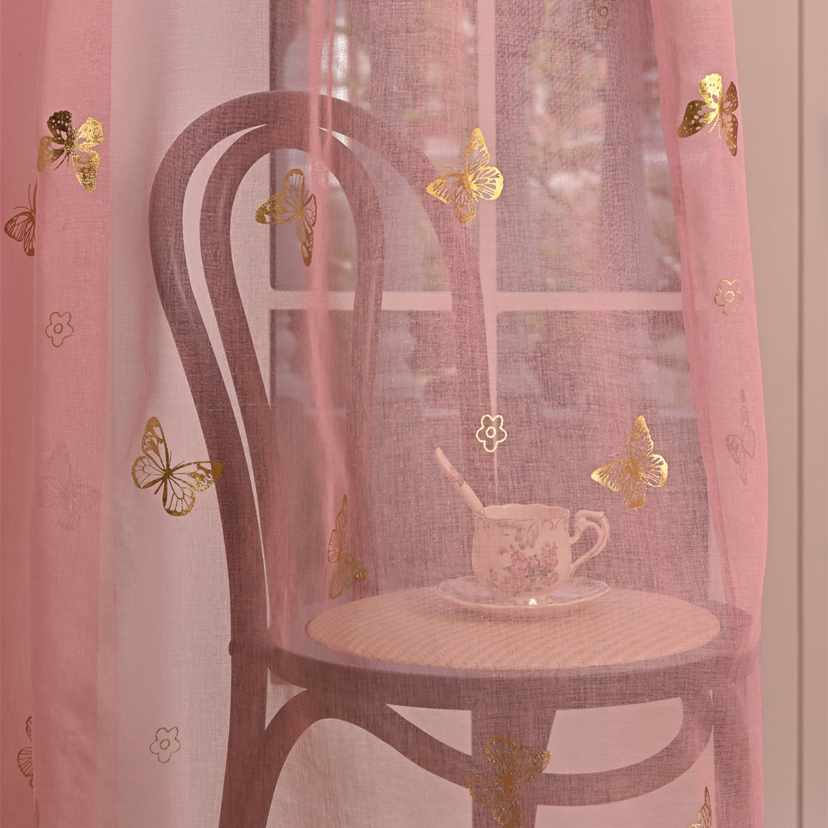 Nuevo estilo transfronterizo Full Dolly bronceado mariposa perforado pantalla de ventana producto terminado fabricante de cortinas SHEIN spot