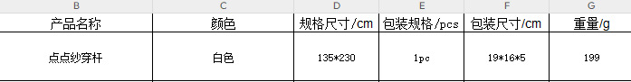 | Especificaciones | 135*230cm (una pieza de vástago) |