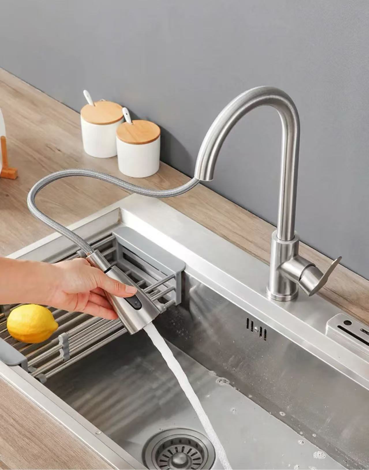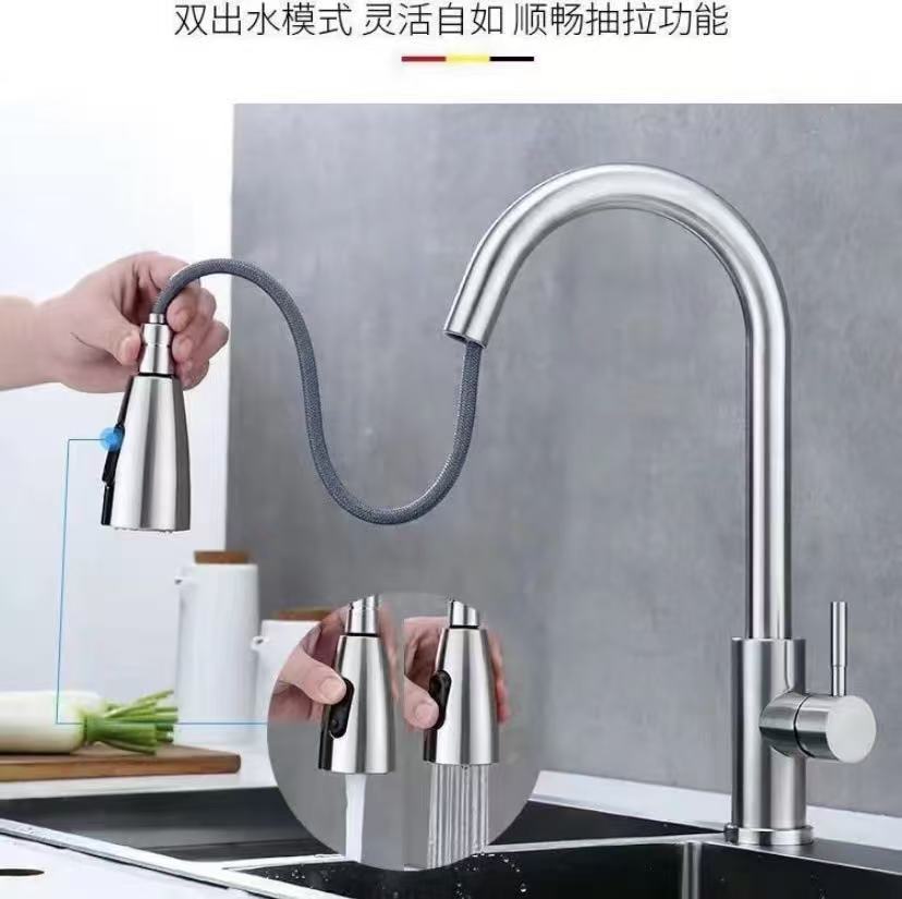 Comercio exterior cocina fría y caliente boquilla grifo 304 tipo de extracción universal retráctil lavabo doméstico