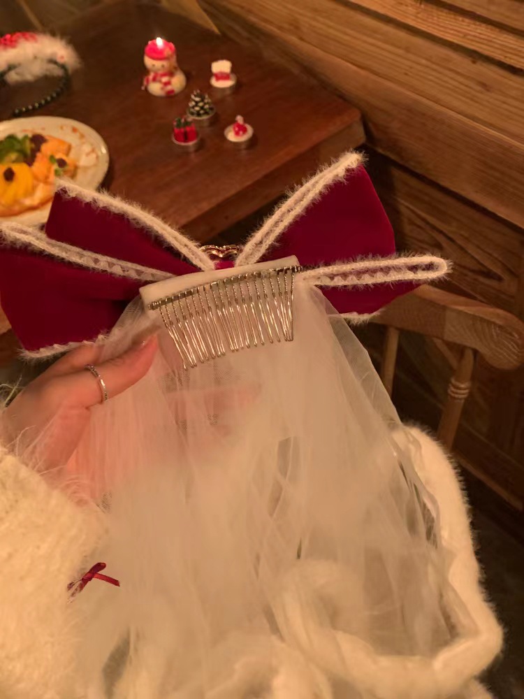 El otoño y el Invierno de Navidad velo terciopelo rojo arco blanco fiesta fotos accesorios para el cabello escapar princesa tocado