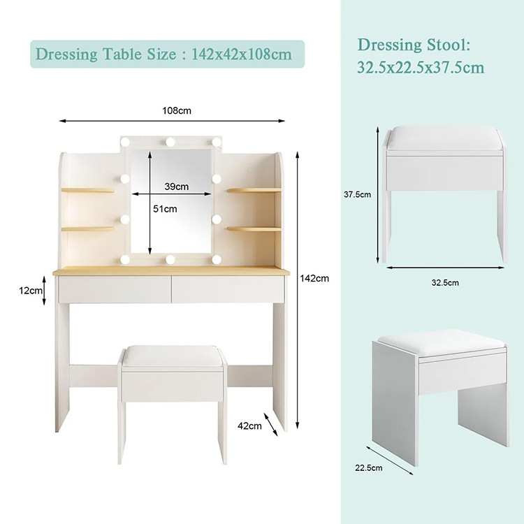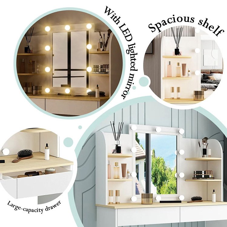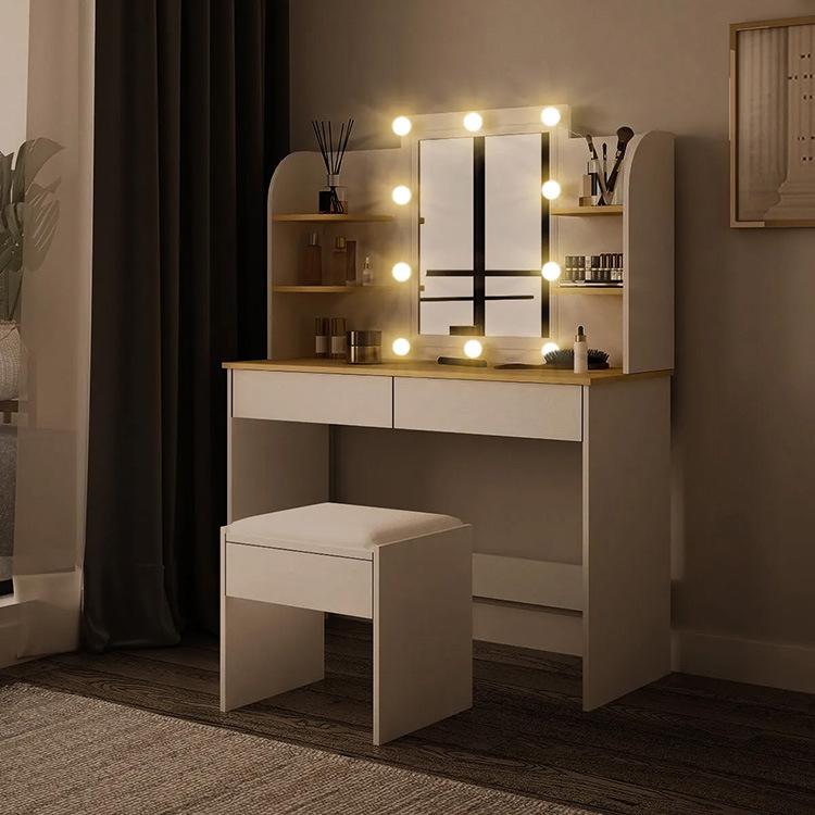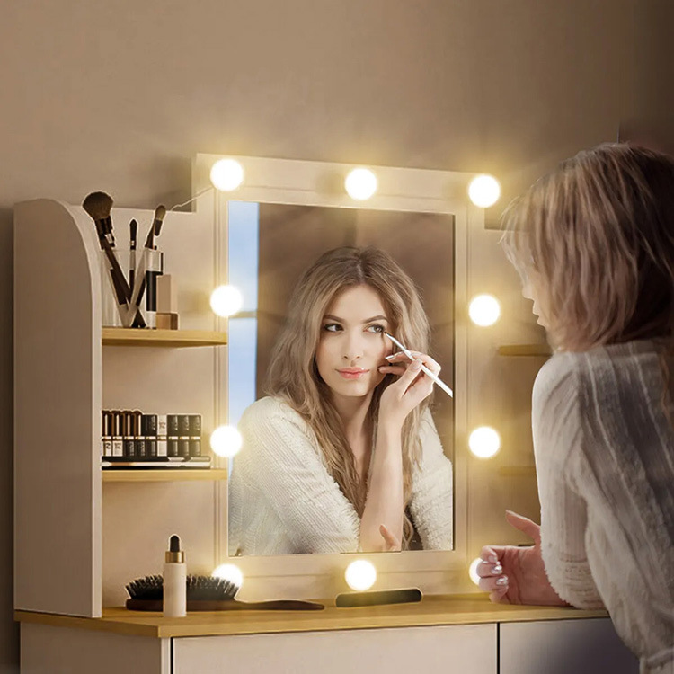 Comercio exterior exportación de tocador dormitorio almacenamiento de maquillaje espejo con lámpara espejo de maquillaje almacenamiento muebles de dormitorio