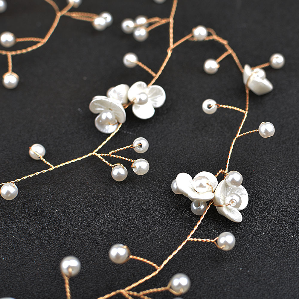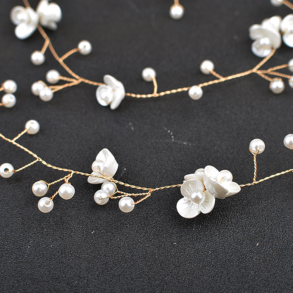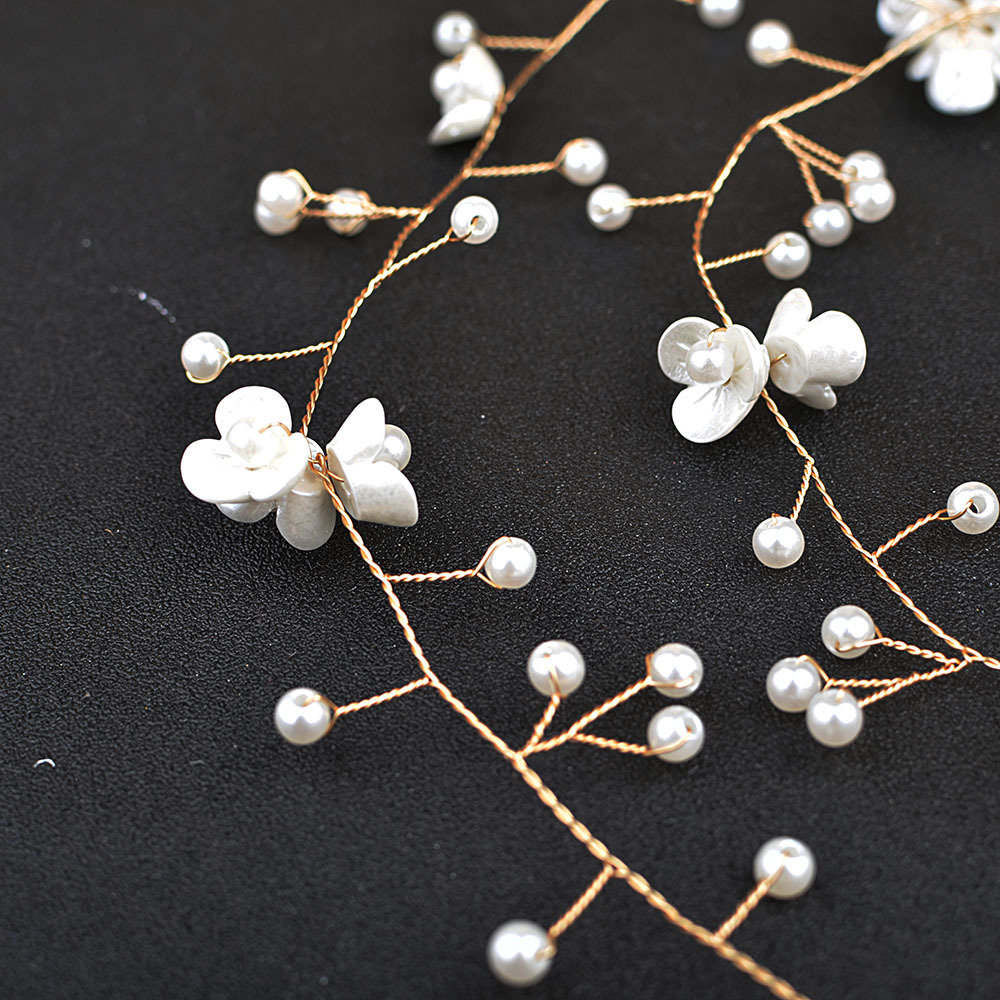 Novia hermosa flor pequeña, tocado de cadena de cabello de perla, flor de perla hecha a mano, accesorios para el cabello alargados, Europa y América transfronterizos