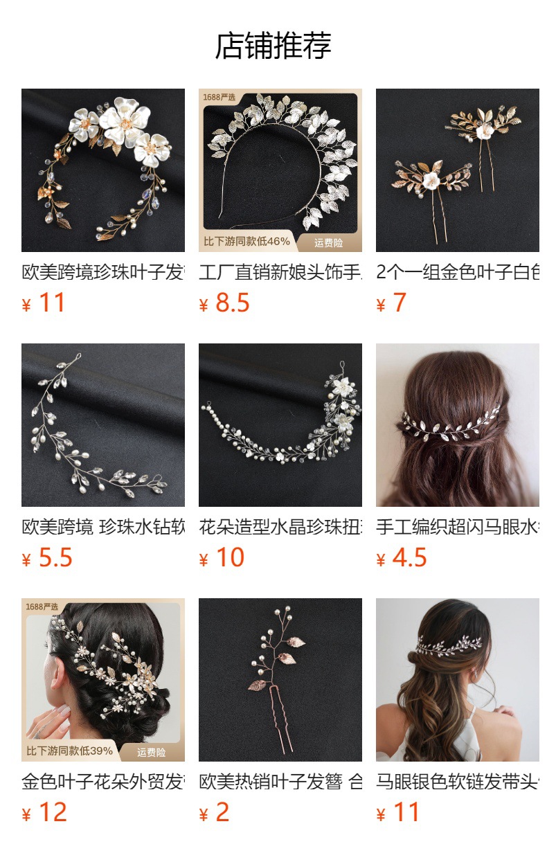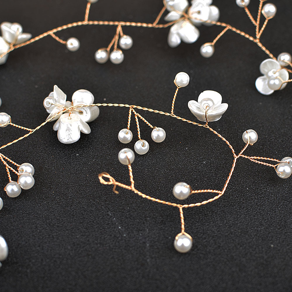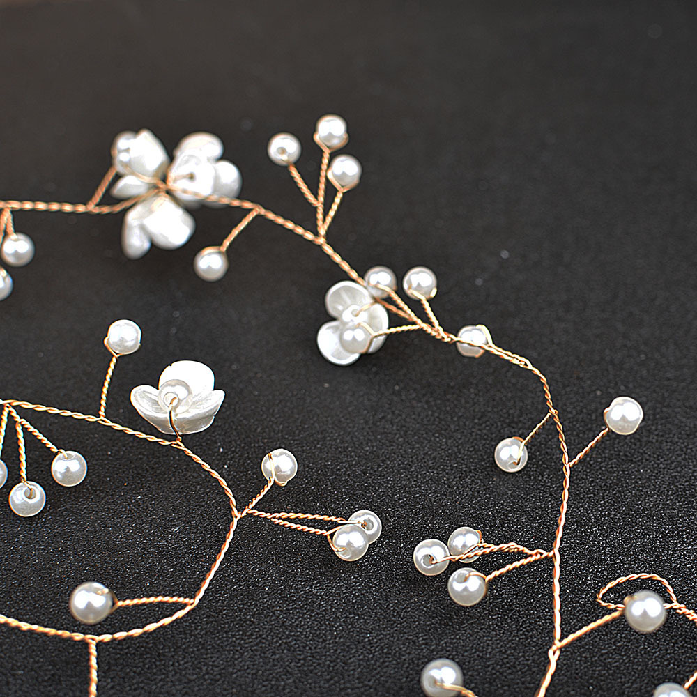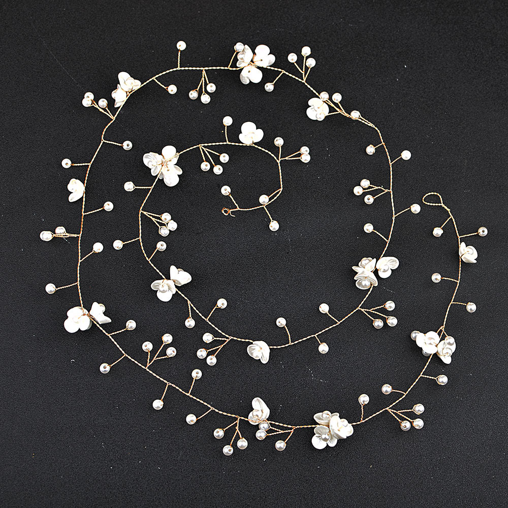 Novia hermosa flor pequeña, tocado de cadena de cabello de perla, flor de perla hecha a mano, accesorios para el cabello alargados, Europa y América transfronterizos