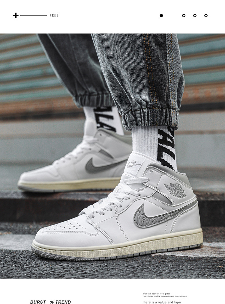 Zapatos de hombre aj, zapatos de mujer de hollín de caña media, nuevos zapatos de tablero gris de sombra blanca pura de Air Force One para hombre, marea