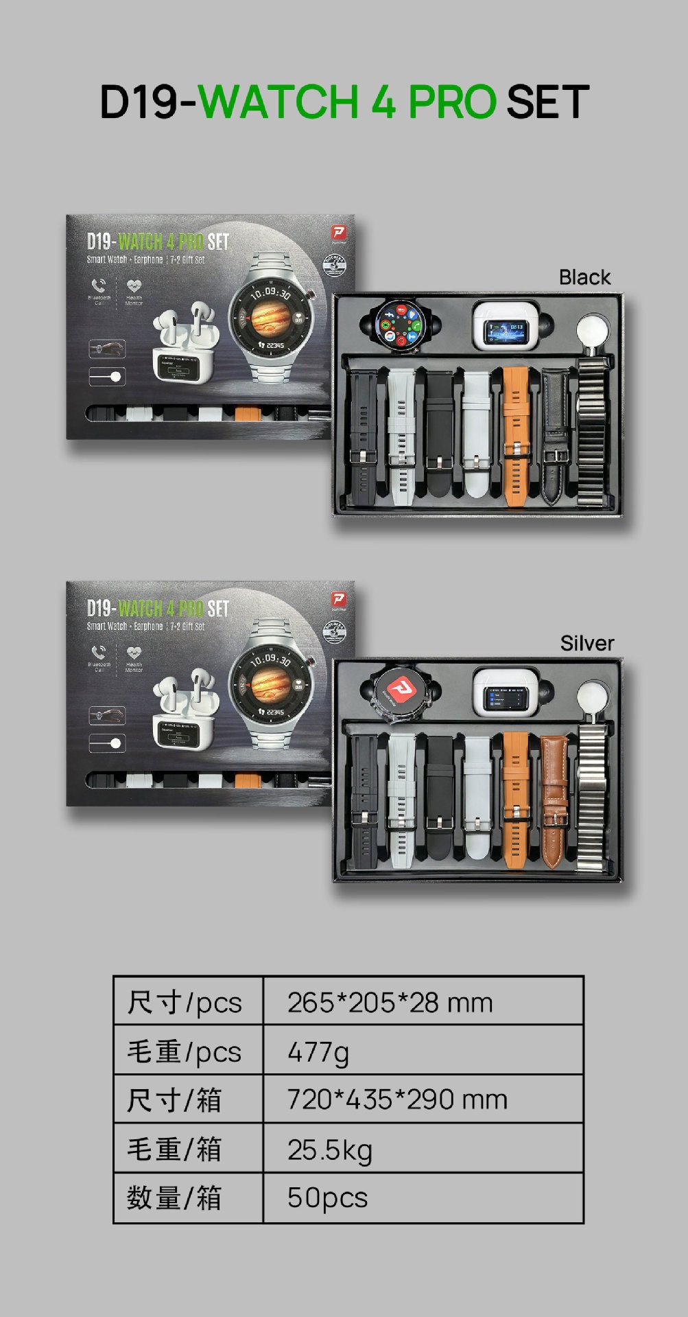 Juego de reloj inteligente de pantalla redonda de alta calidad D19 watch 4 proset carga inalámbrica HD pantalla grande con auriculares
