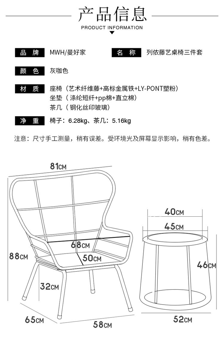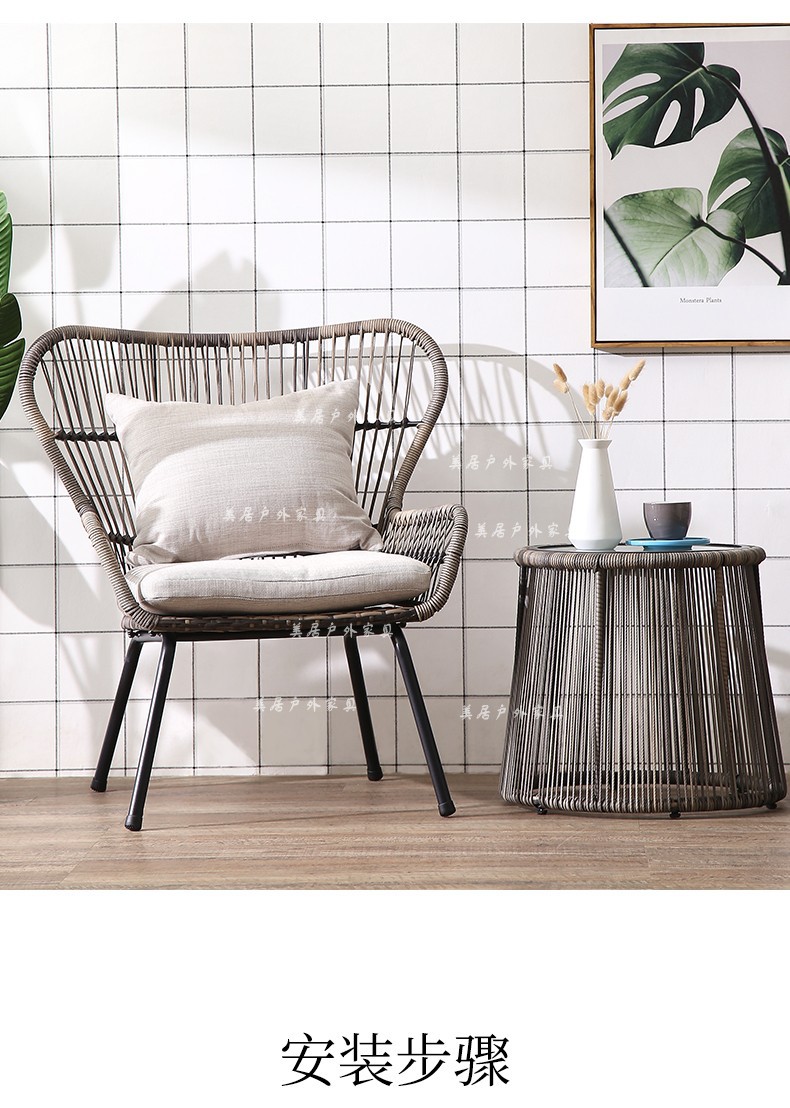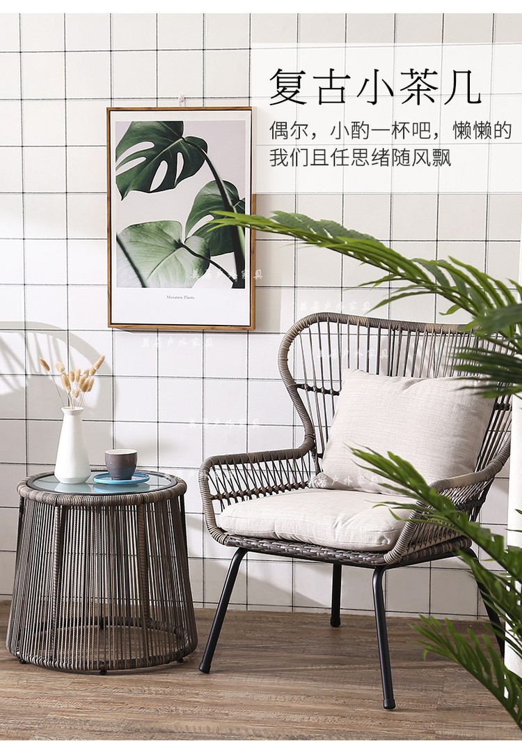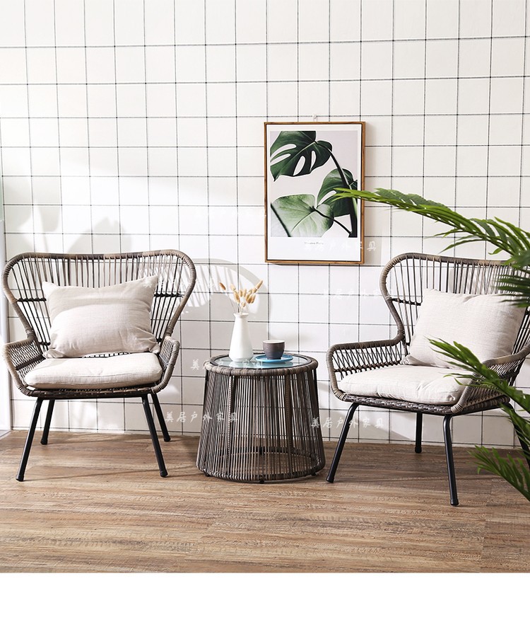 Mesa y silla al aire libre patio ocio mesa de té silla de caña de tres piezas combinación de mesa de té balcón red set simple