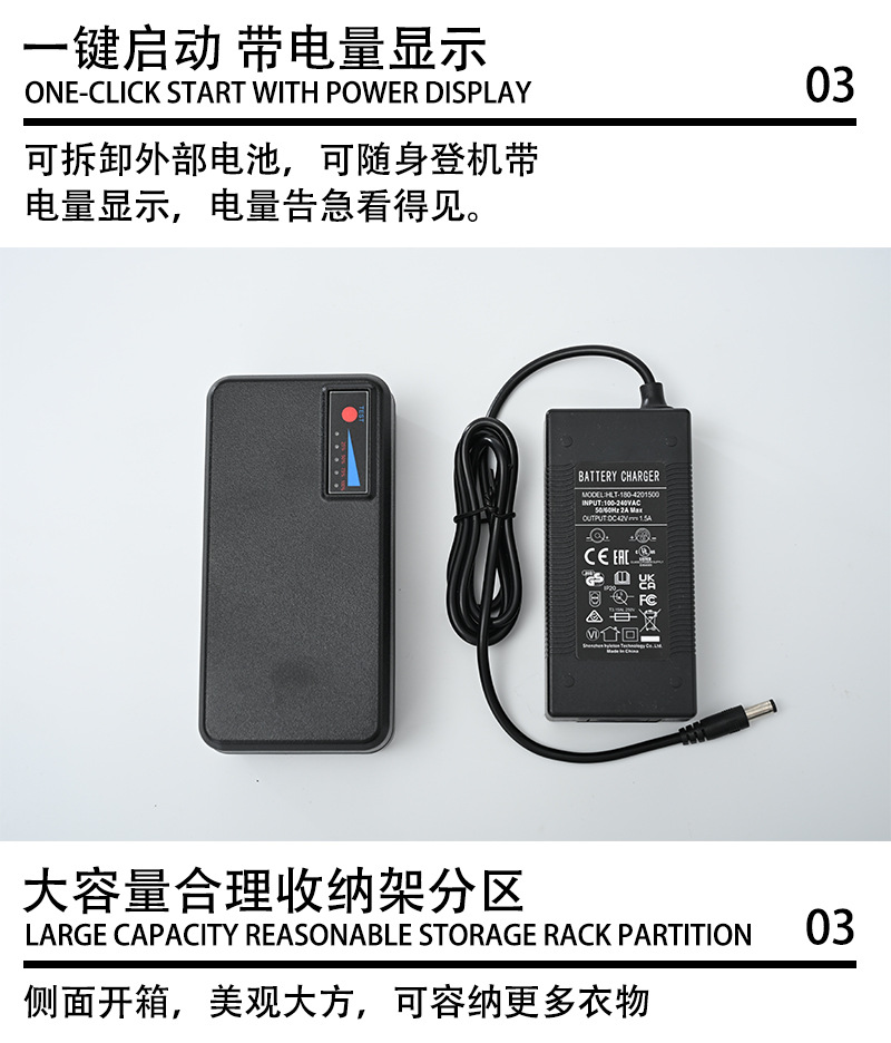 | Calificación de comercio exterior | Las maletas eléctricas tienen calificaciones de exportación y se pueden exportar. |