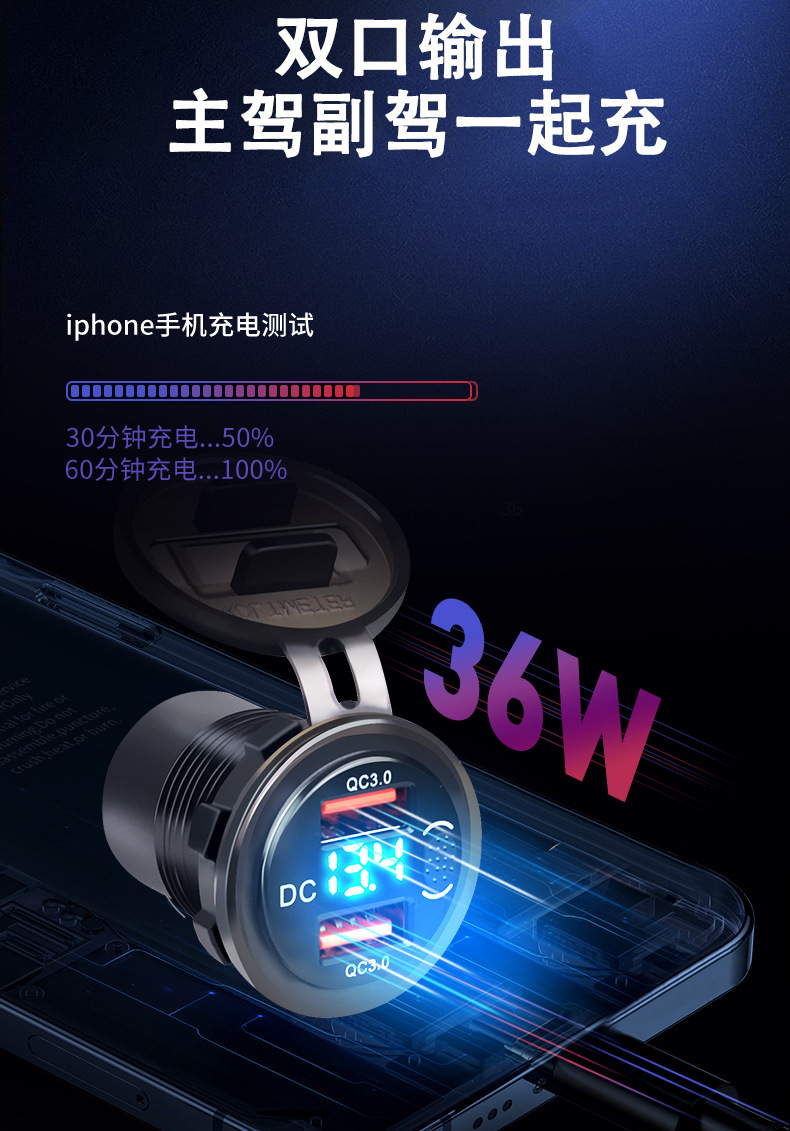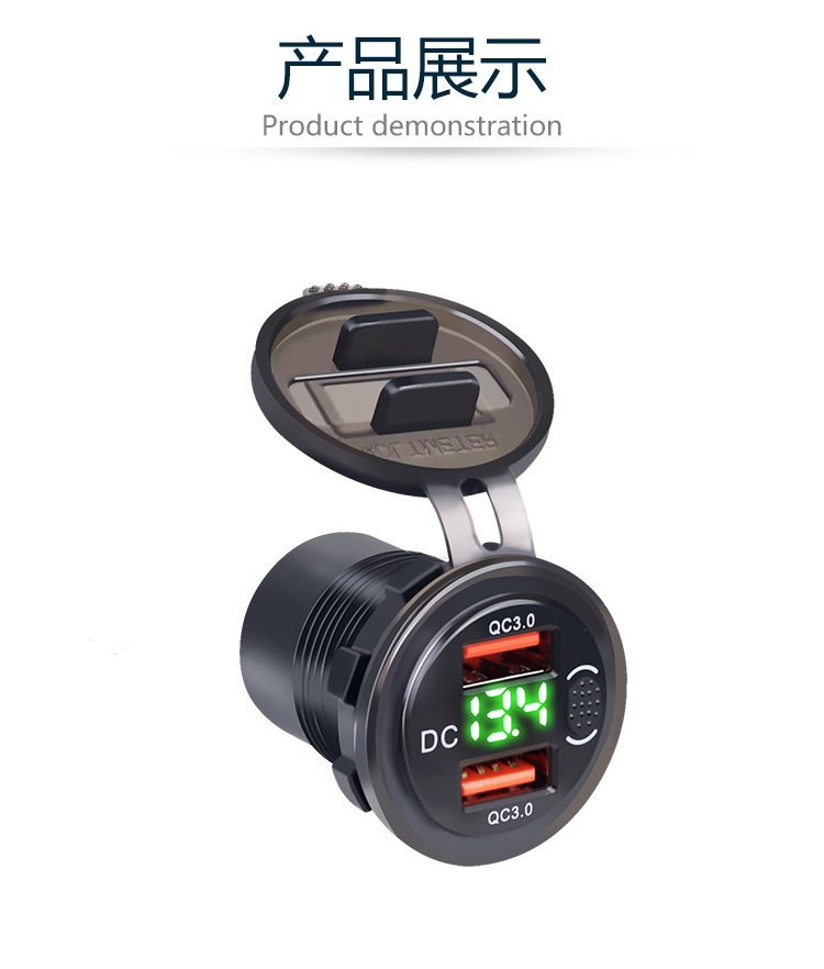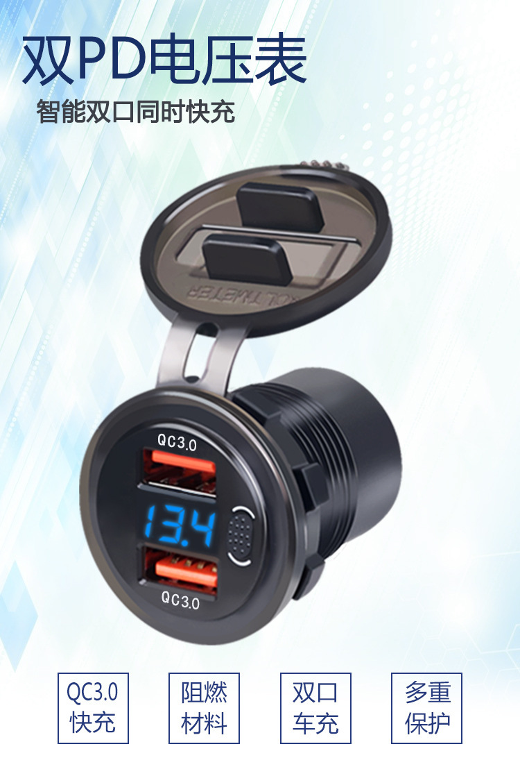 Cargador USB para automóvil Carga rápida de doble puerto 25 Coche 25 Motocicleta Modificación del automóvil 18W con pantalla digital