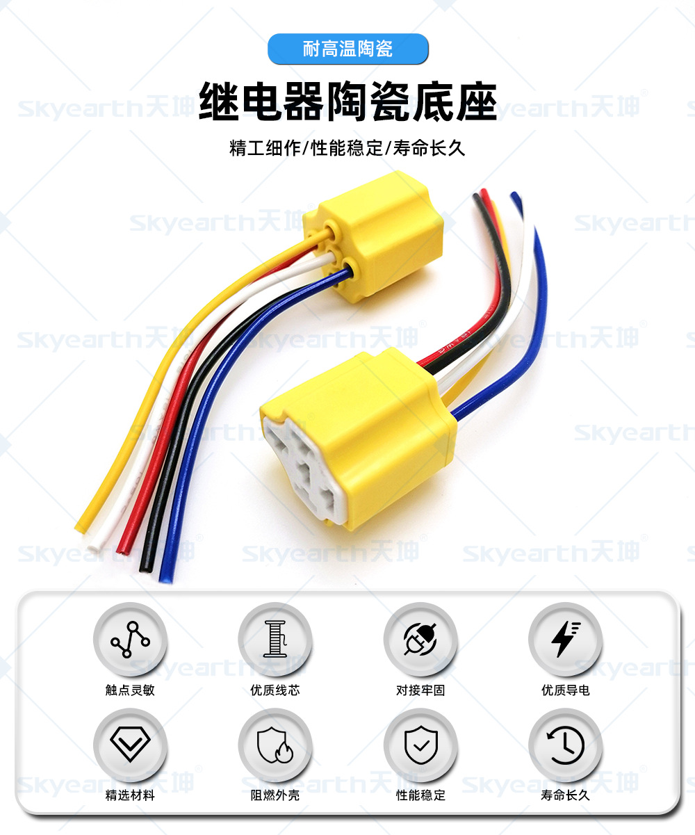 Base de relé, cable de cobre completo, enchufe de cinta de cerámica modificado 40A, enchufe de relé resistente a altas temperaturas de cinco enchufes