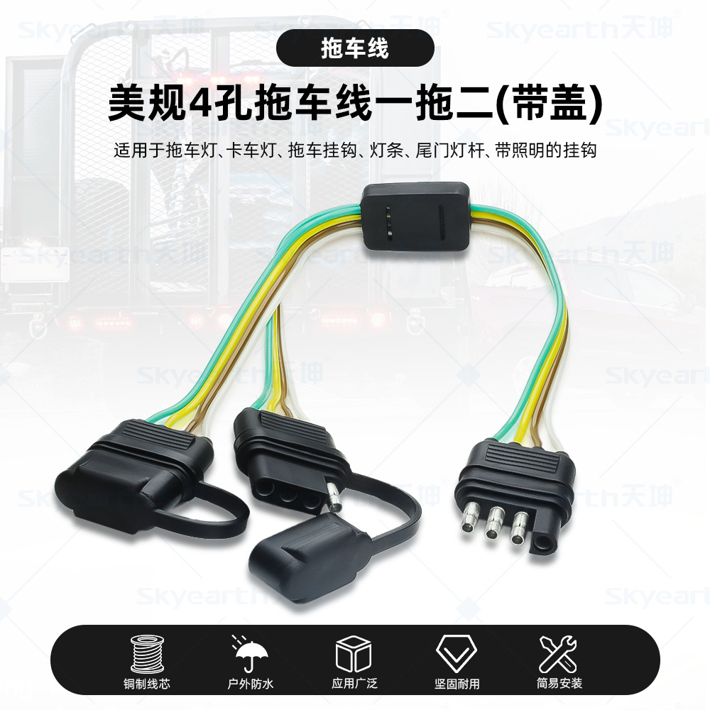 Cable de enchufe de remolque americano arnés de un remolque, dos y cuatro núcleos, adaptador SAE de 4 orificios, cable de alimentación de luz de automóvil, cable macho y hembra
