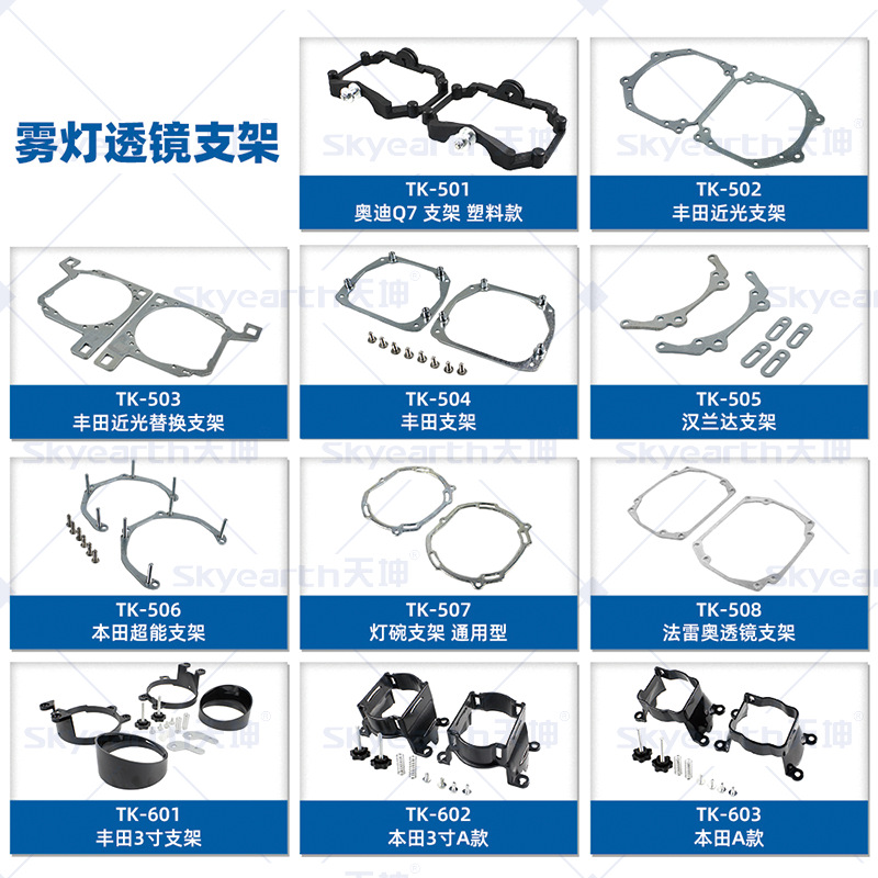 | Especificaciones | Tk - 501 [modelo de plástico de soporte Audi q7], tk - 502 [soporte de haz bajo toyota], tk - 503 [soporte de reemplazo de haz bajo toyota], tk - 504 [soporte toyota], tk - 505 [soporte highlander], tk - 506 [soporte de energía súper honda], tk - 507 [soporte de tazón de luz universal], tk - 508 [soporte de lente fareo] |
