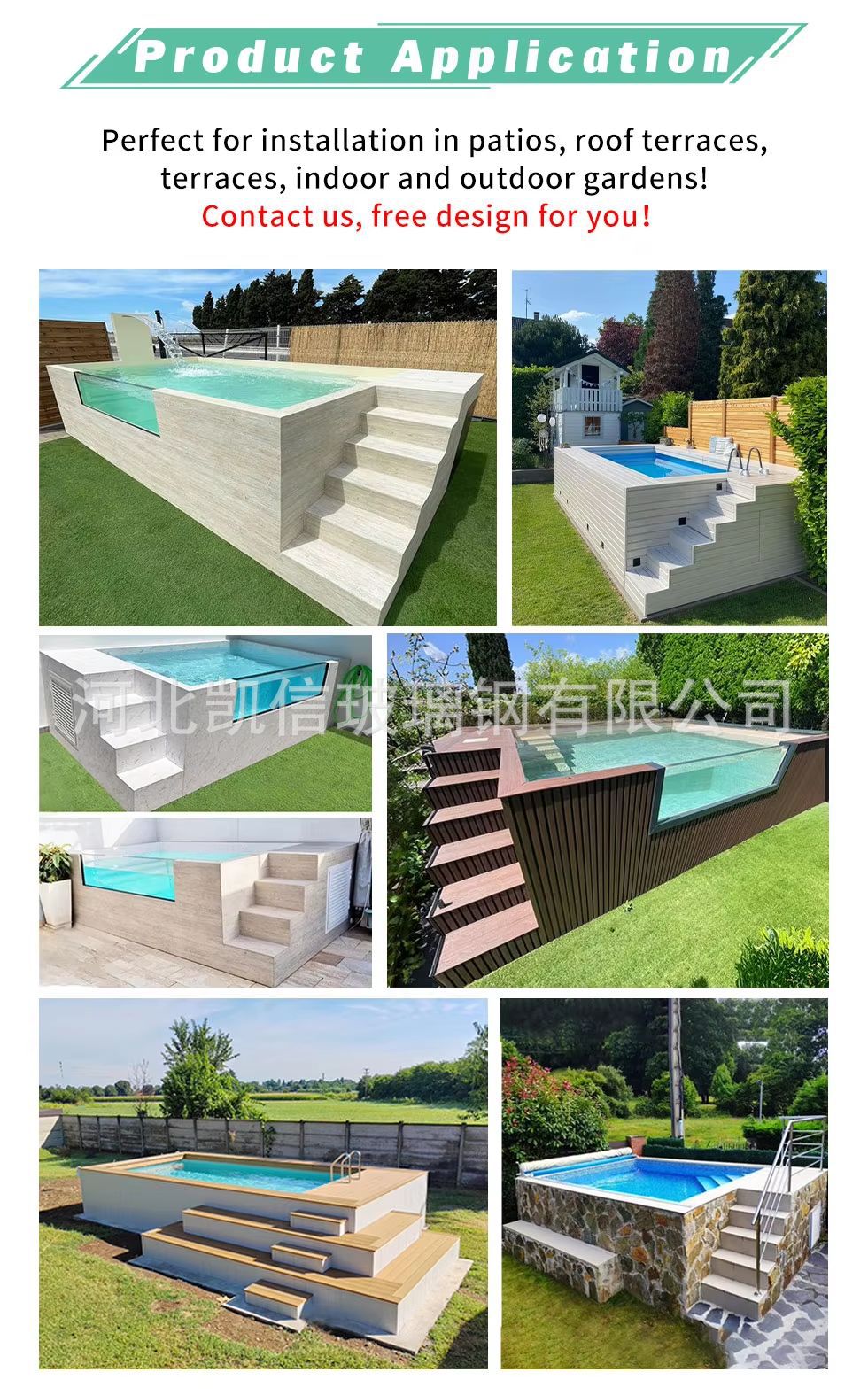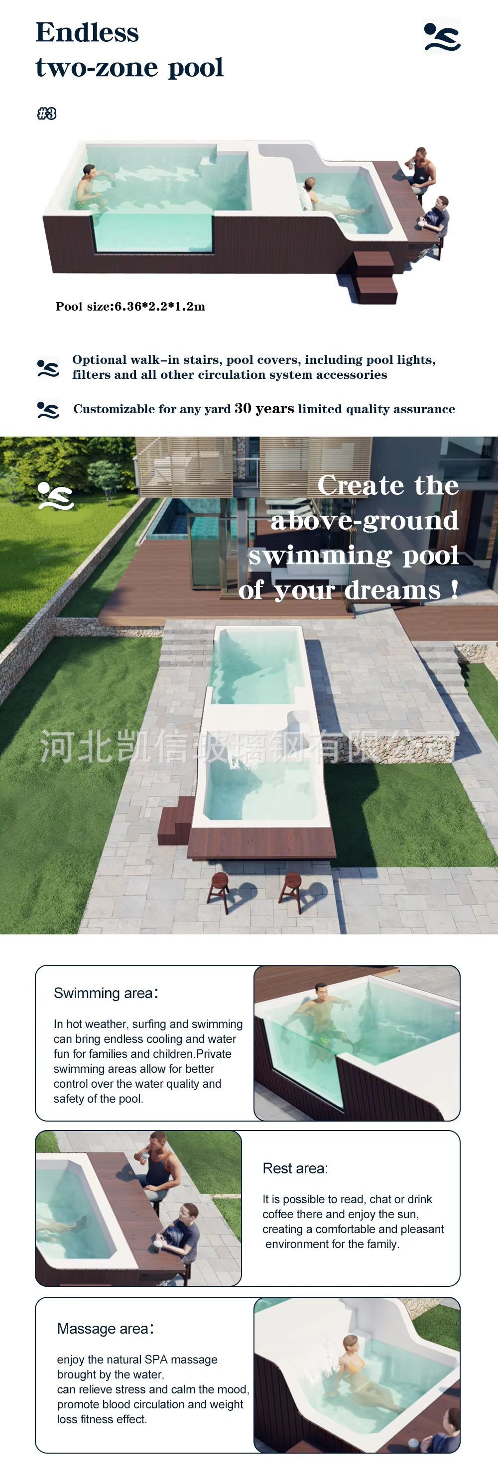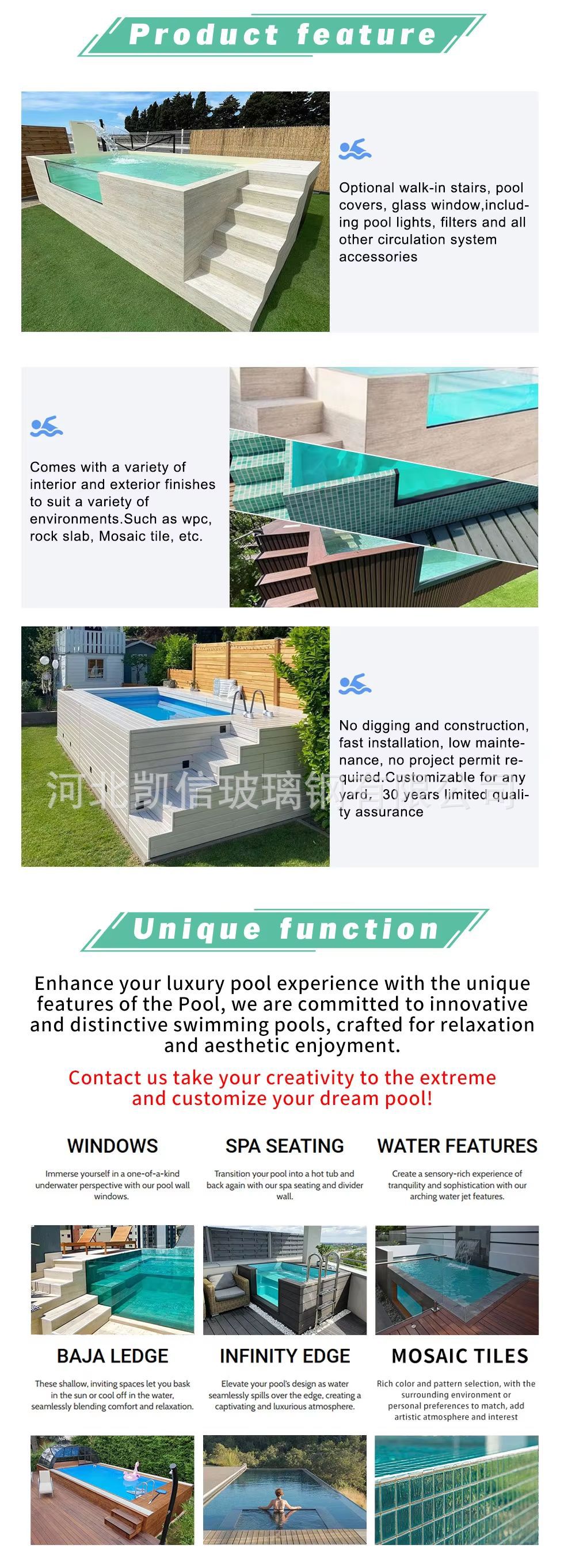 Piscina de madera Mini vacaciones al aire libre Jacuzzi y spa de natación Pequeña piscina interior de fibra de vidrio