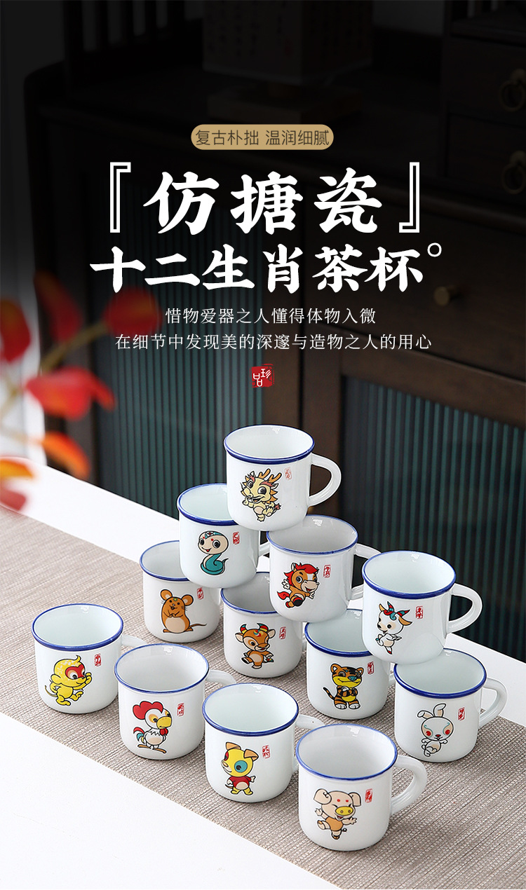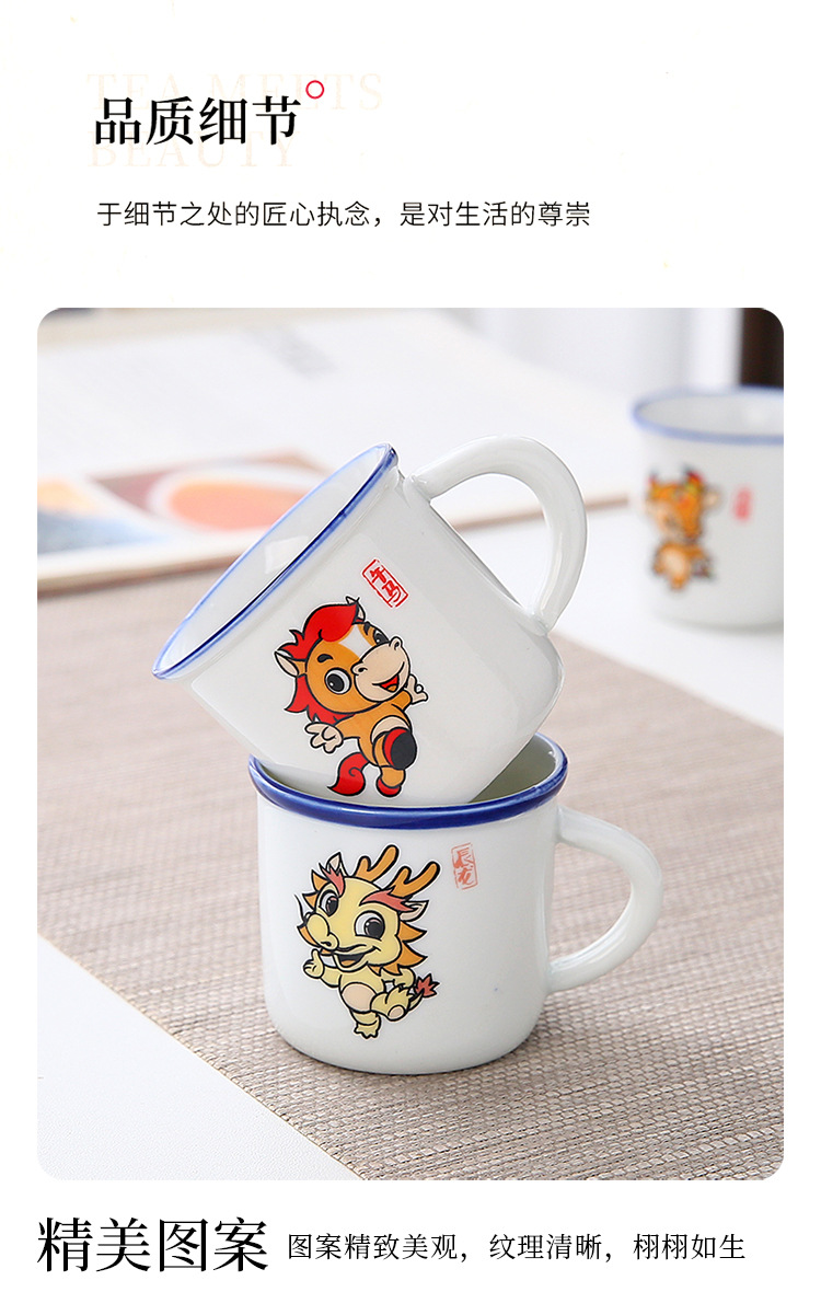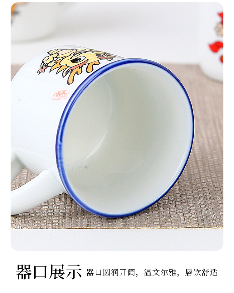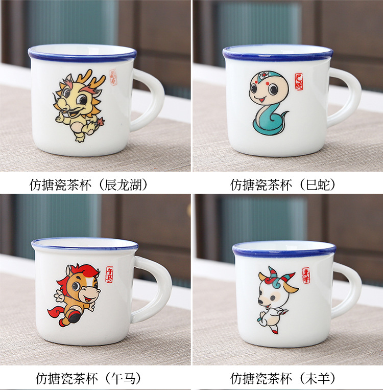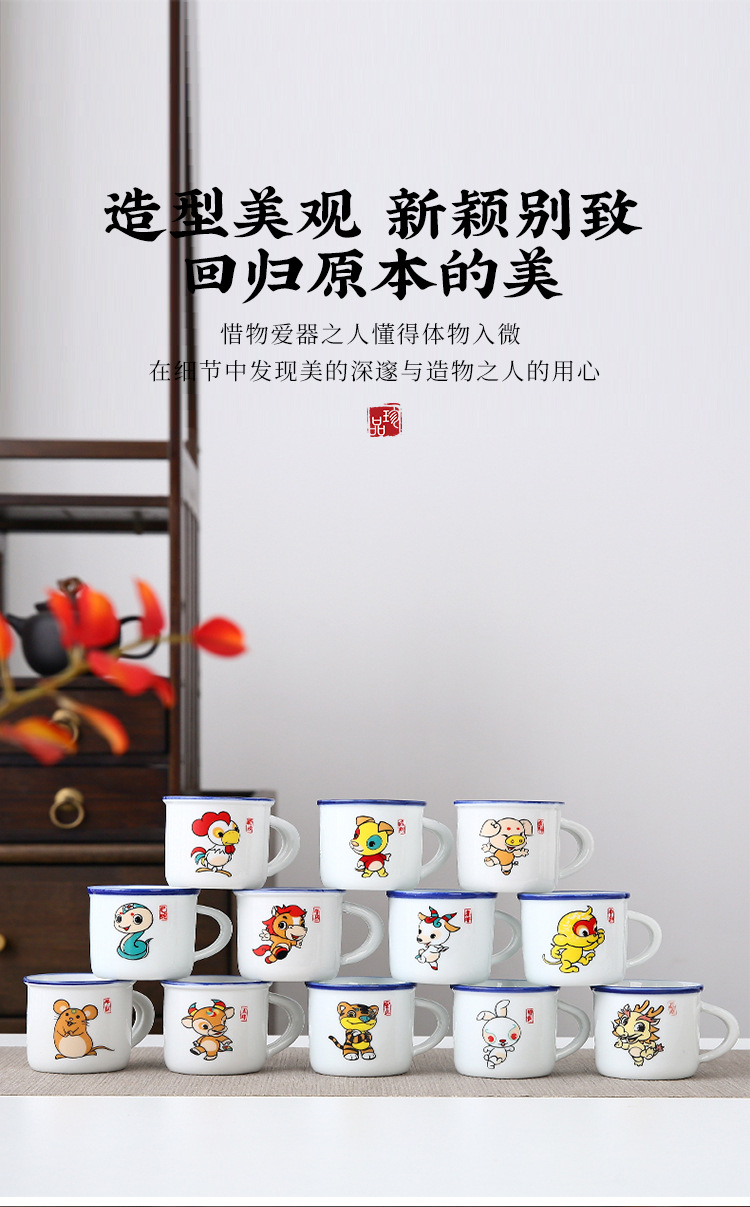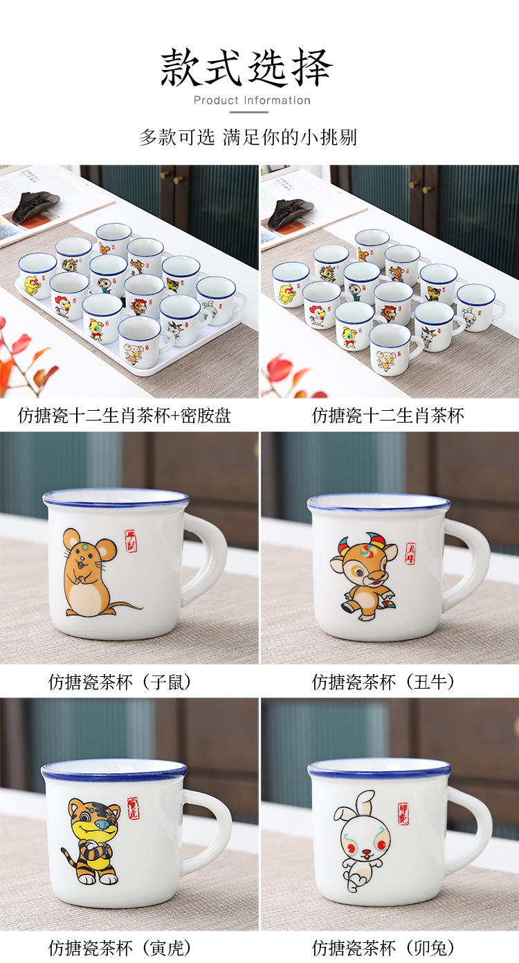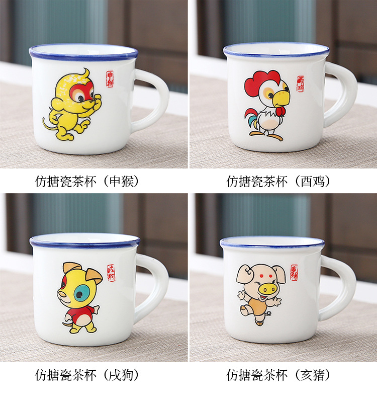 Taza de cerámica de dibujos animados para niños chinos Taza de desayuno Taza de leche Taza de enjuague bucal Taza de esmalte de imitación retro nostálgico del zodiaco