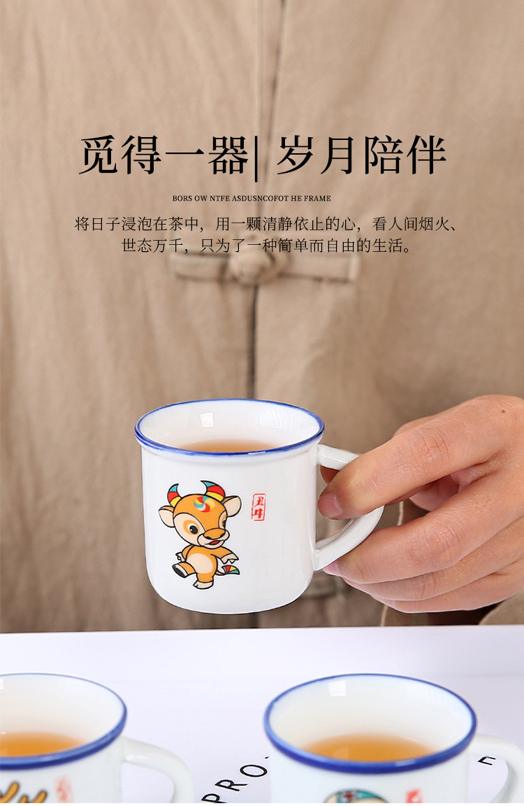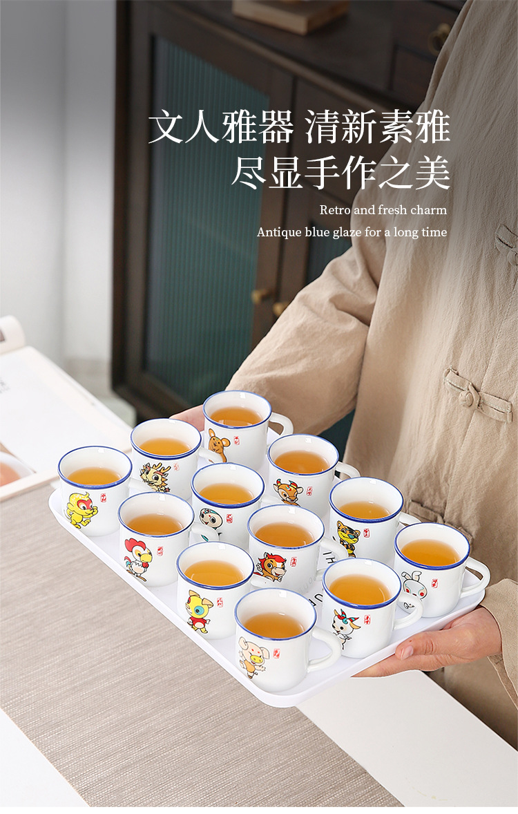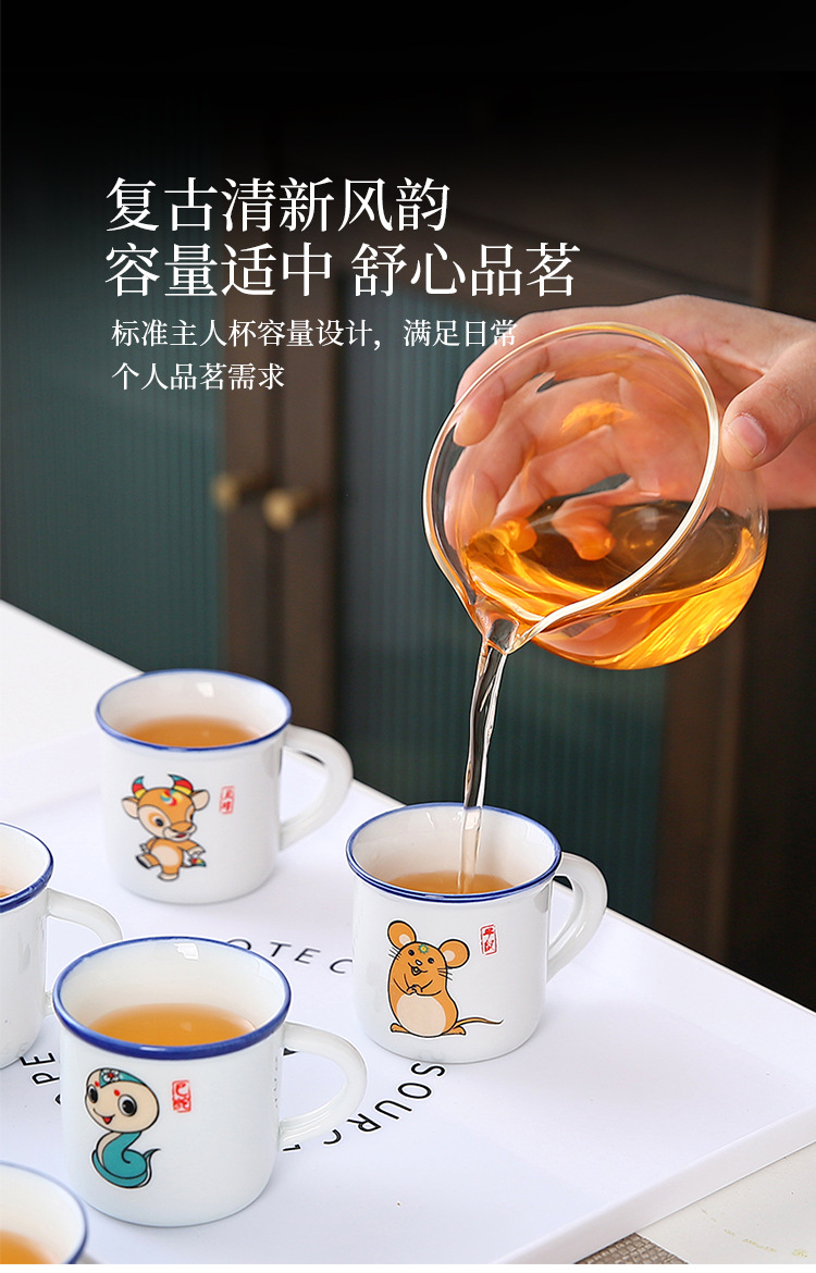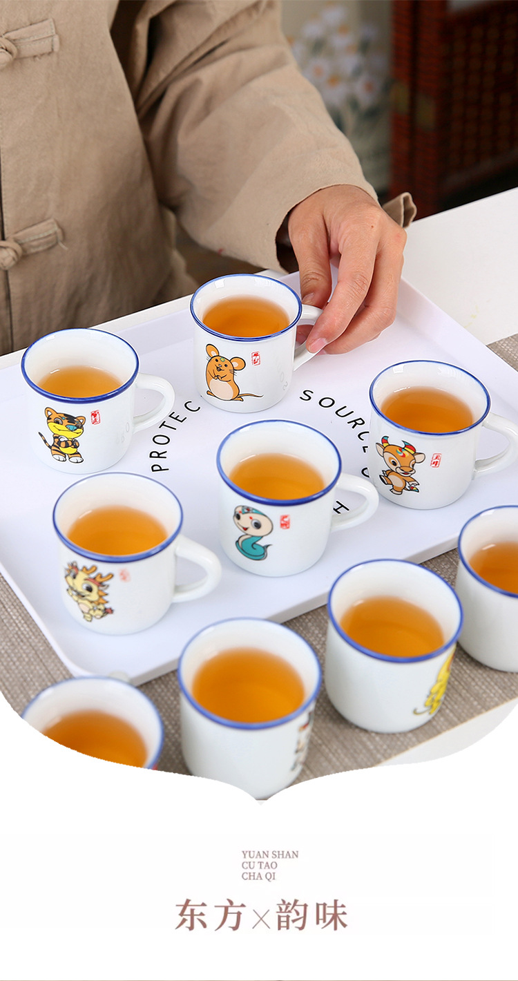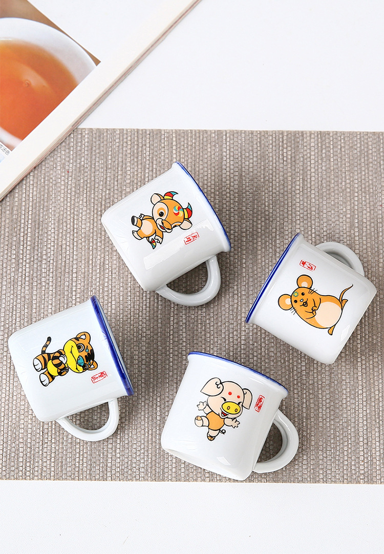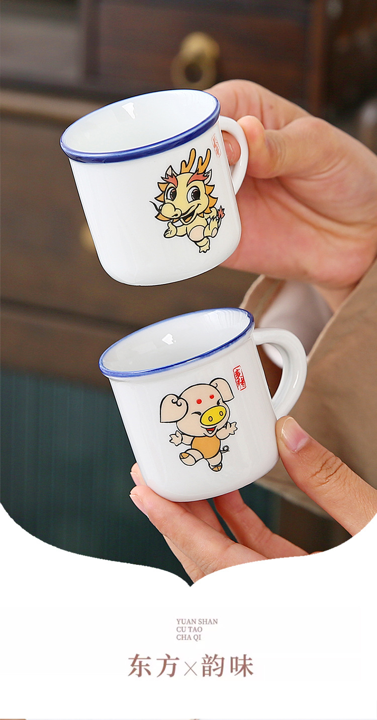 Taza de cerámica de dibujos animados para niños chinos Taza de desayuno Taza de leche Taza de enjuague bucal Taza de esmalte de imitación retro nostálgico del zodiaco