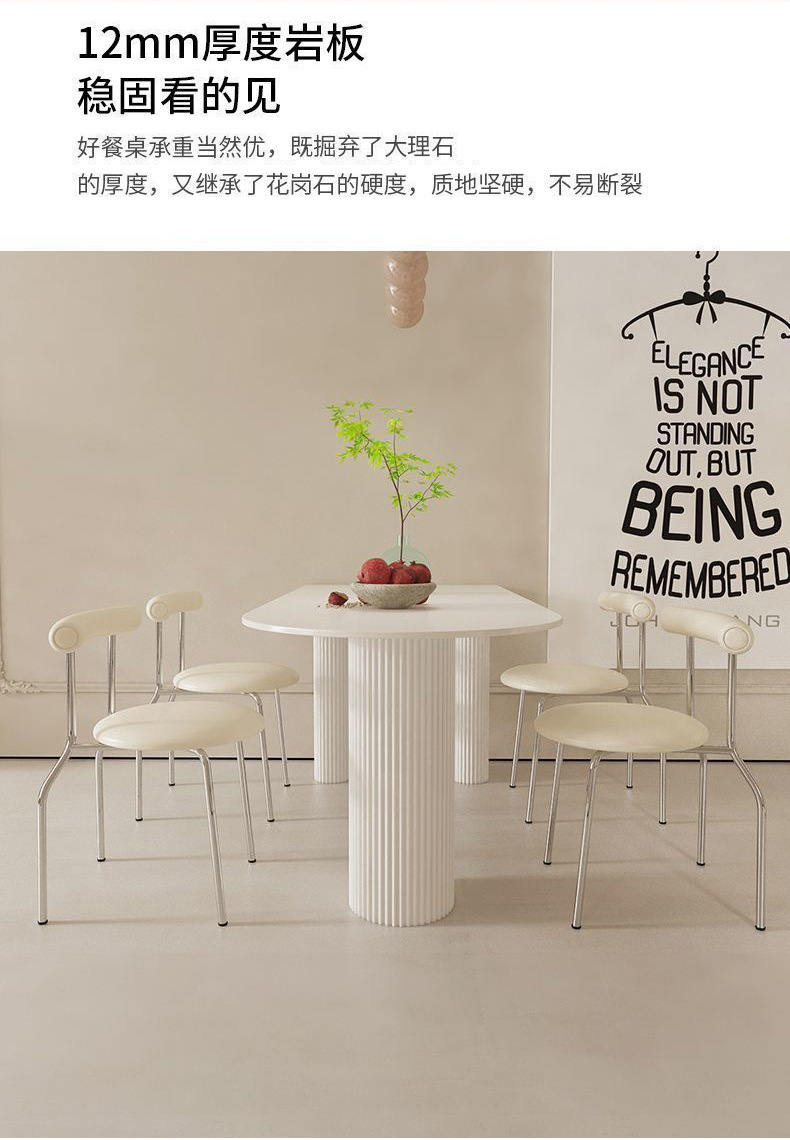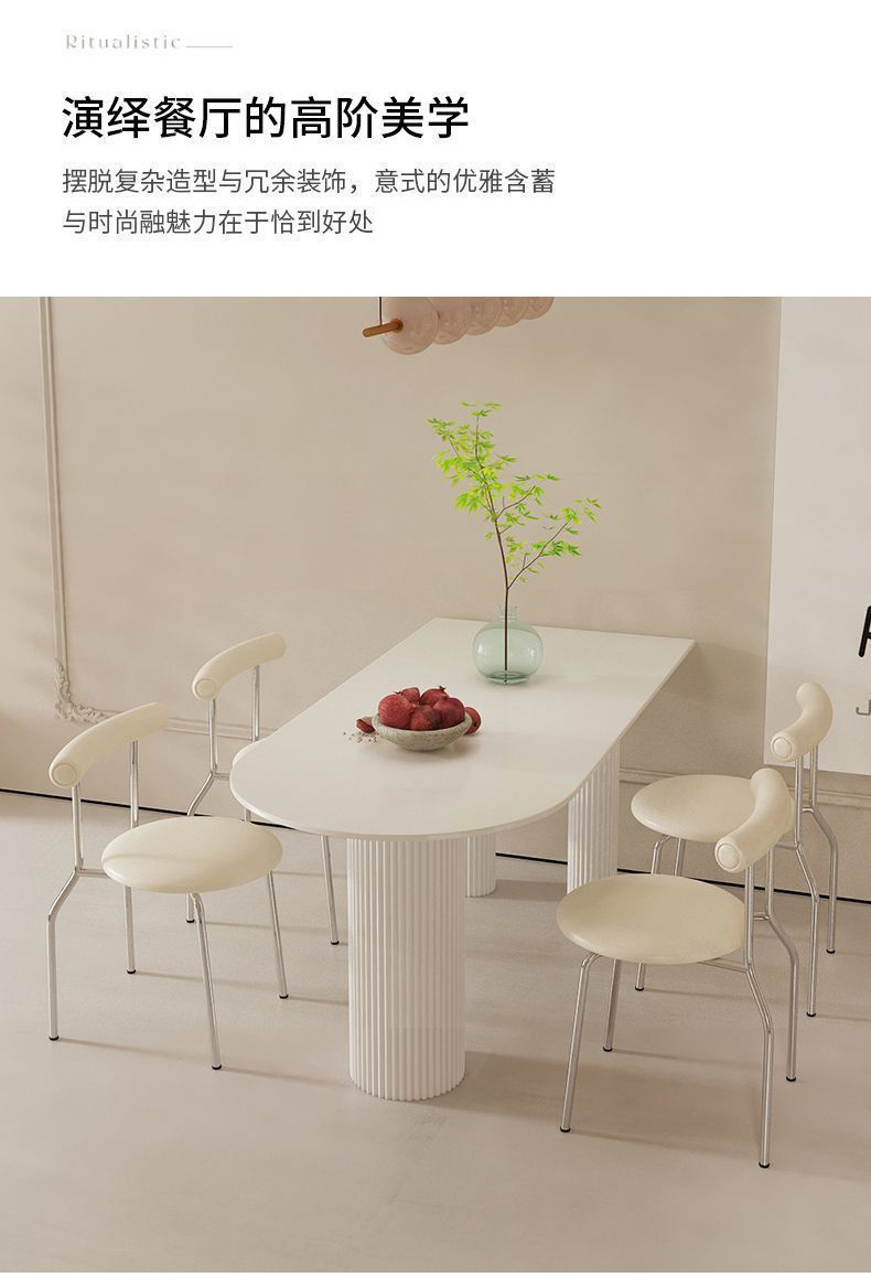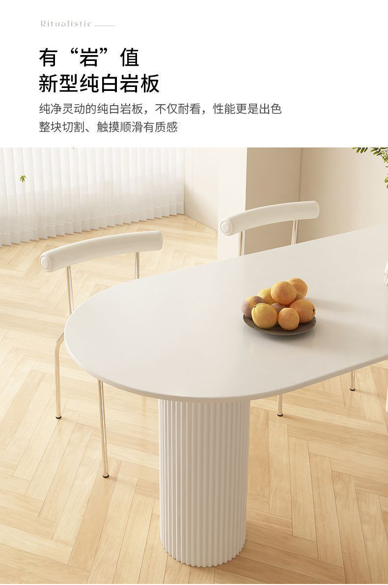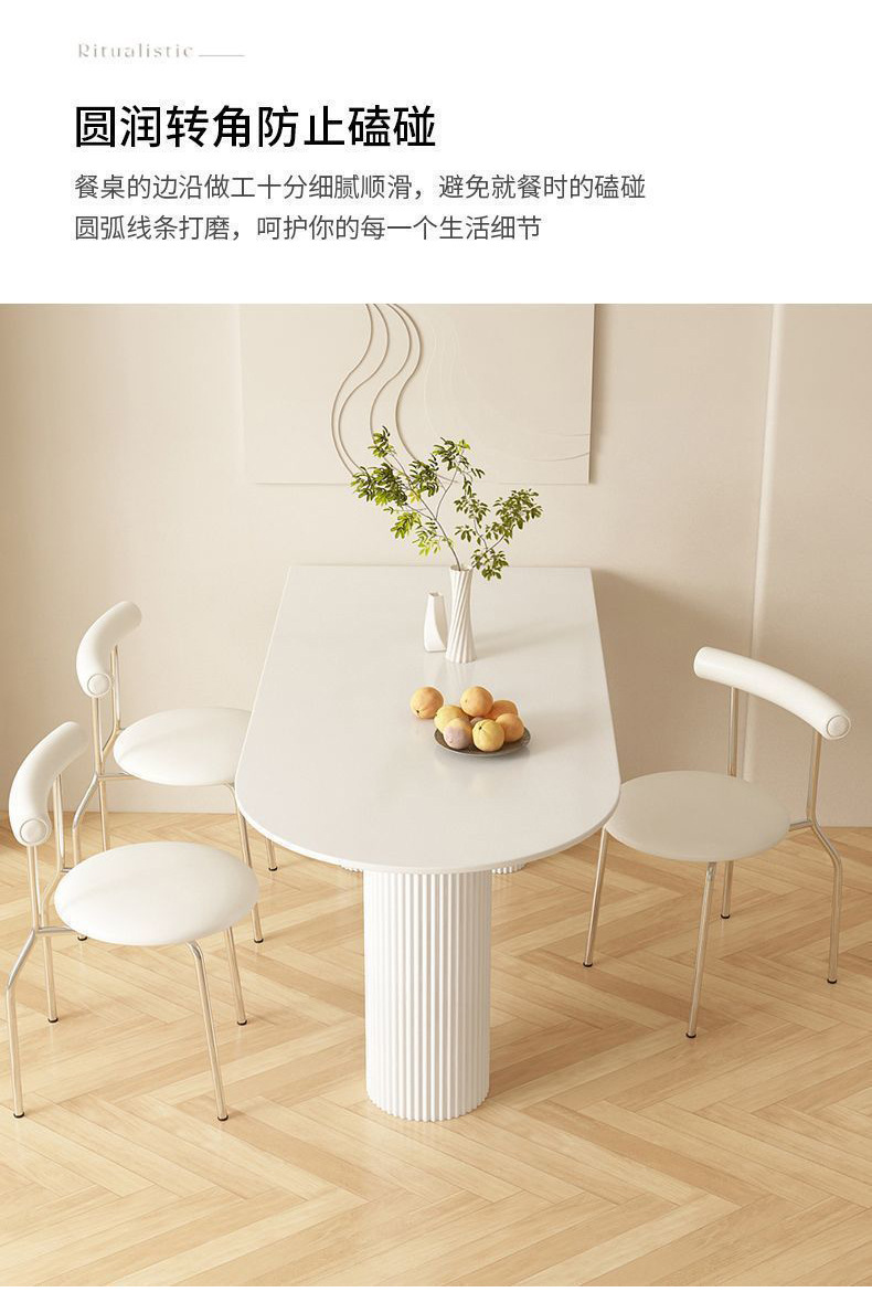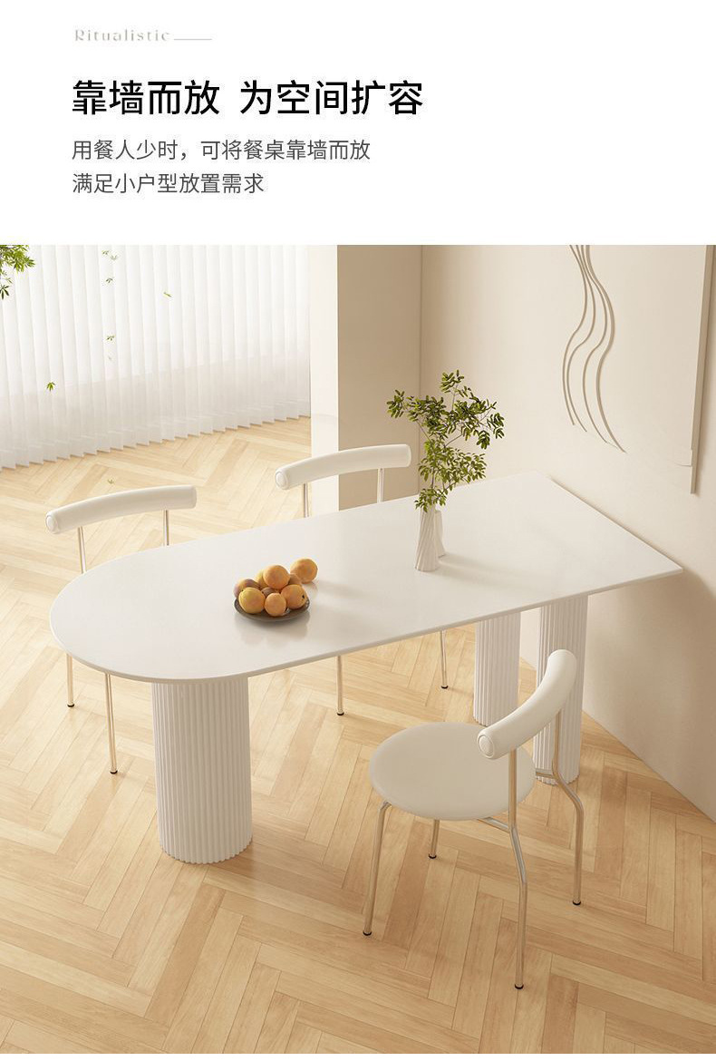 Mezcla de mesa de comedor de tabla de roca blanca pura, mezcla de mesa de comedor semicircular moderna y simple para hogares pequeños.