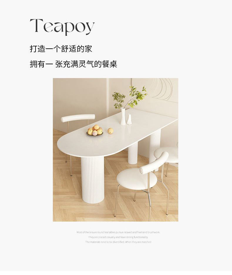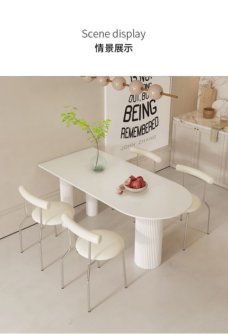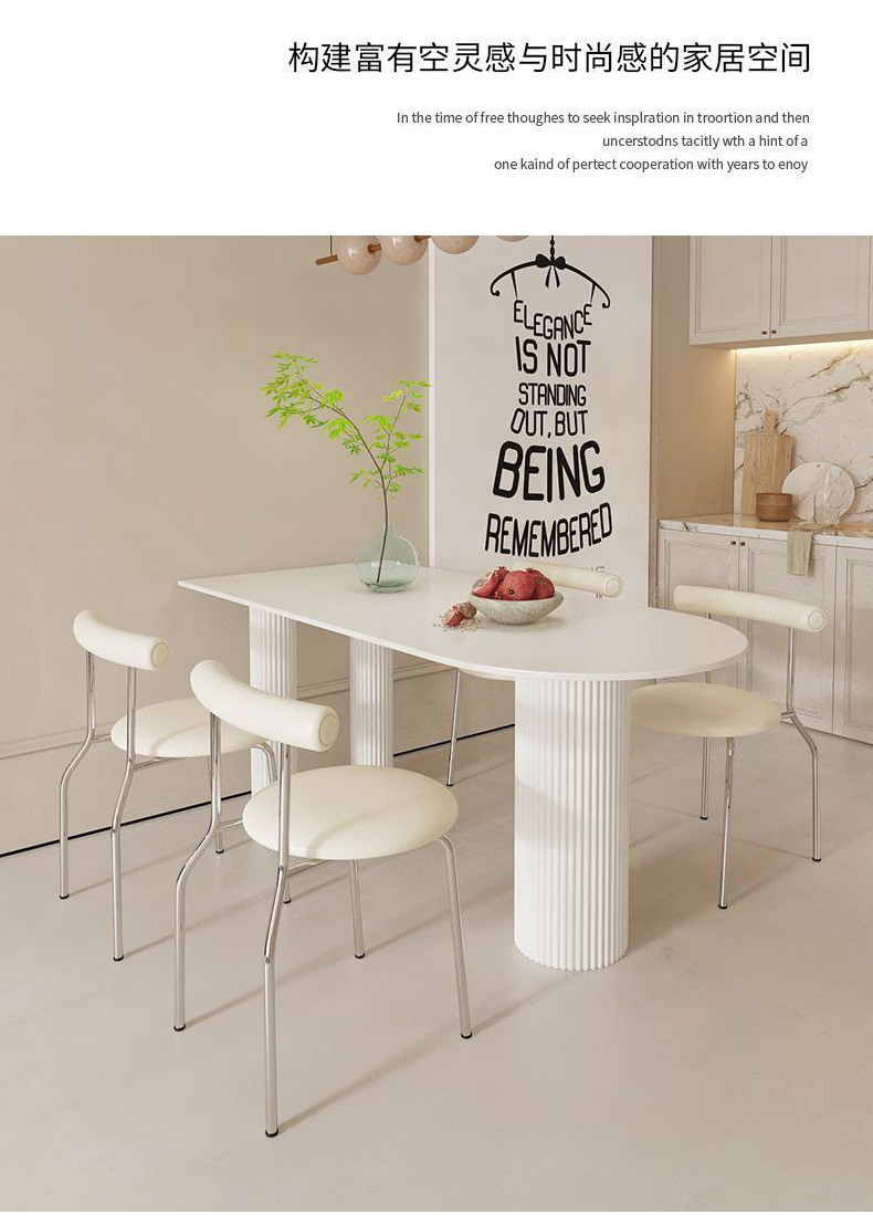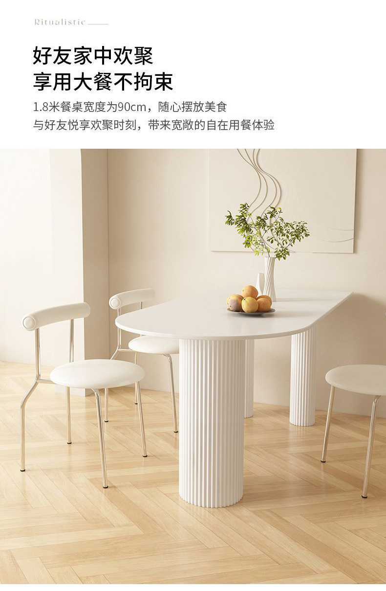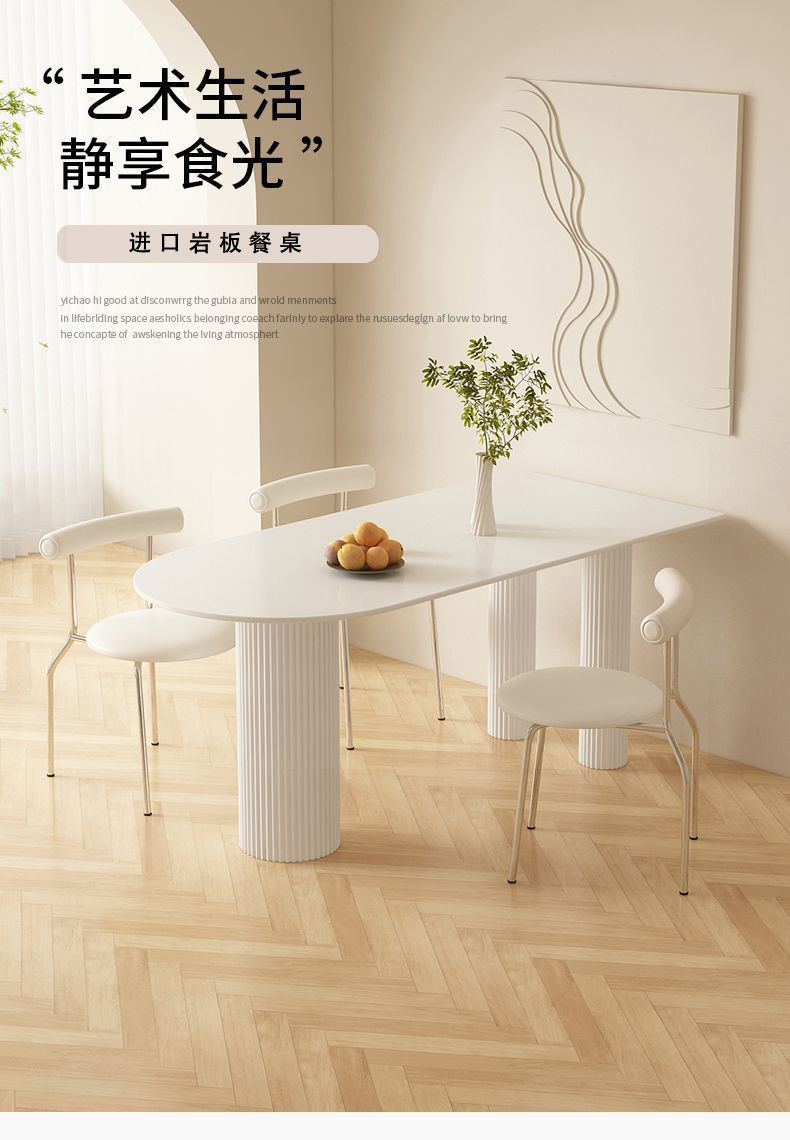 Mezcla de mesa de comedor de tabla de roca blanca pura, mezcla de mesa de comedor semicircular moderna y simple para hogares pequeños.