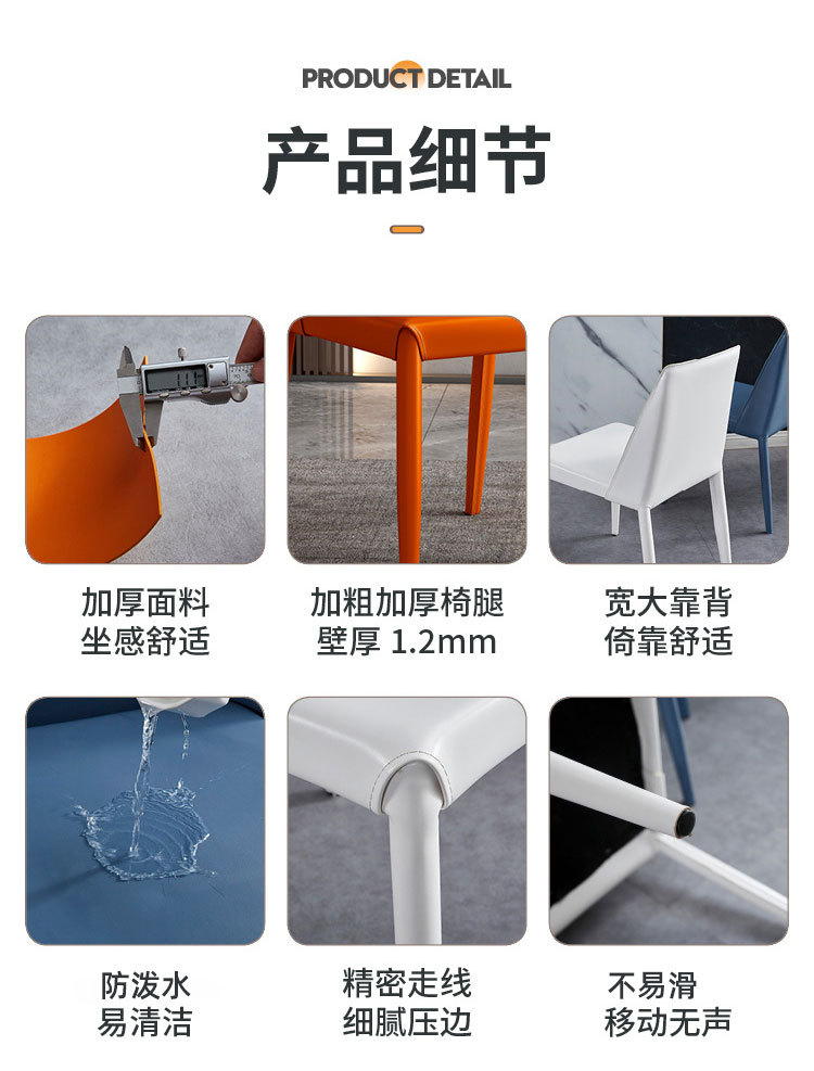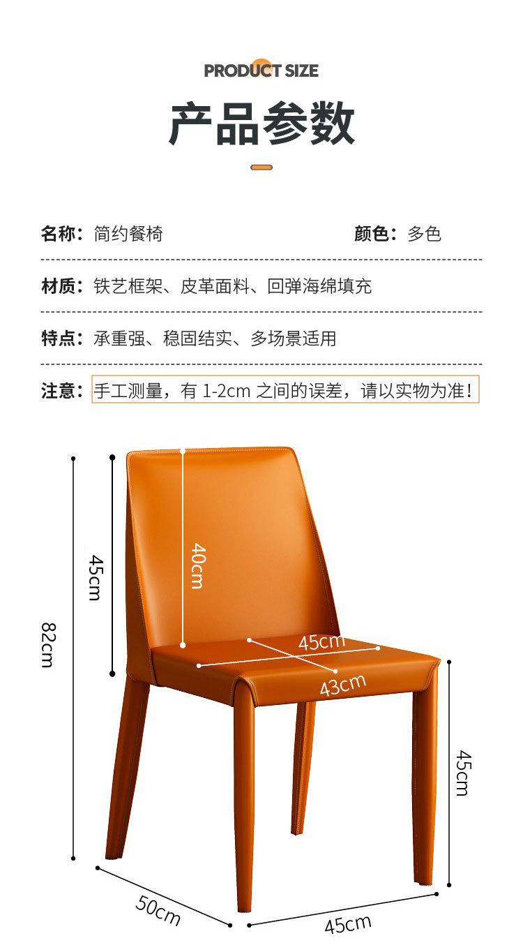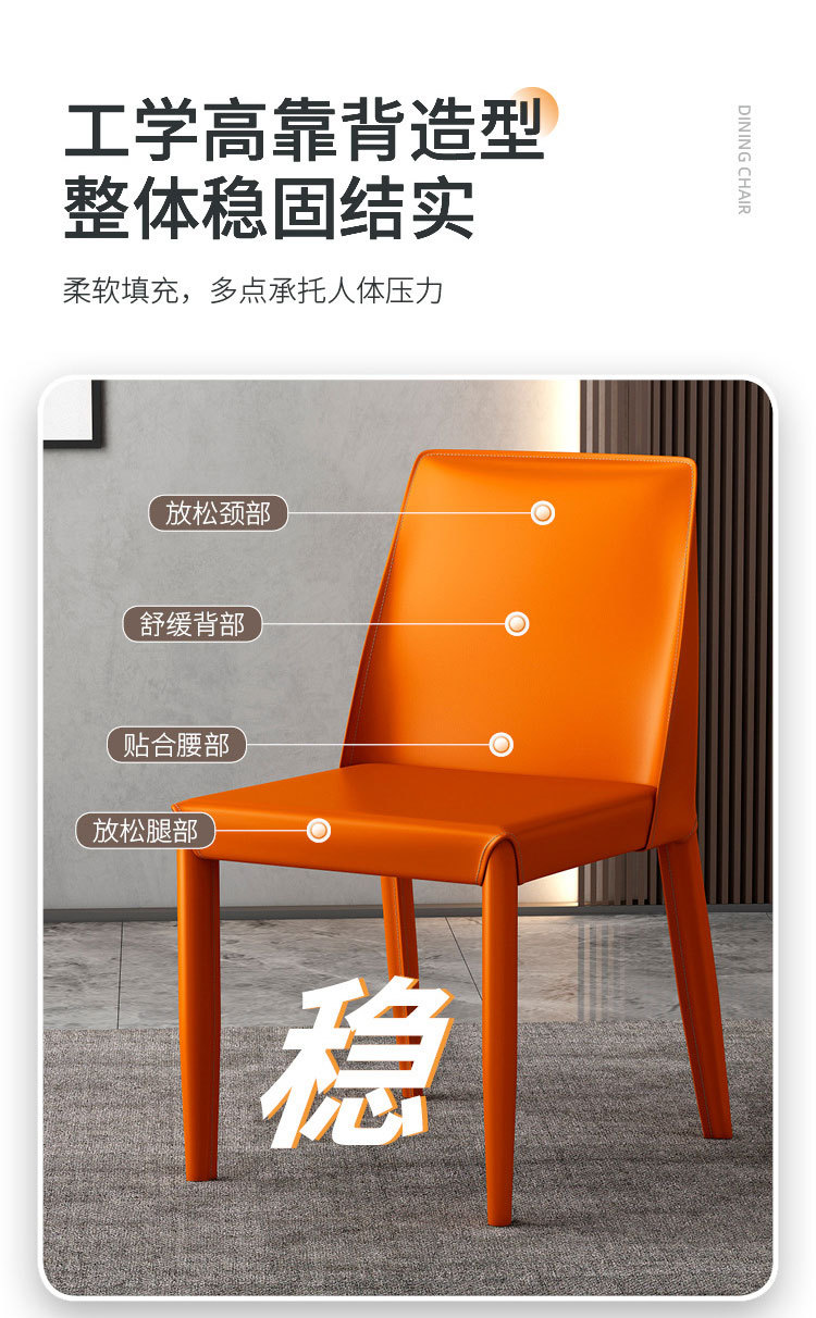 Mesa y silla de comedor de comedor moderno y simple, silla de cuero de diseño respaldo, silla de silla de aire industrial, exportación gruesa y minimalista