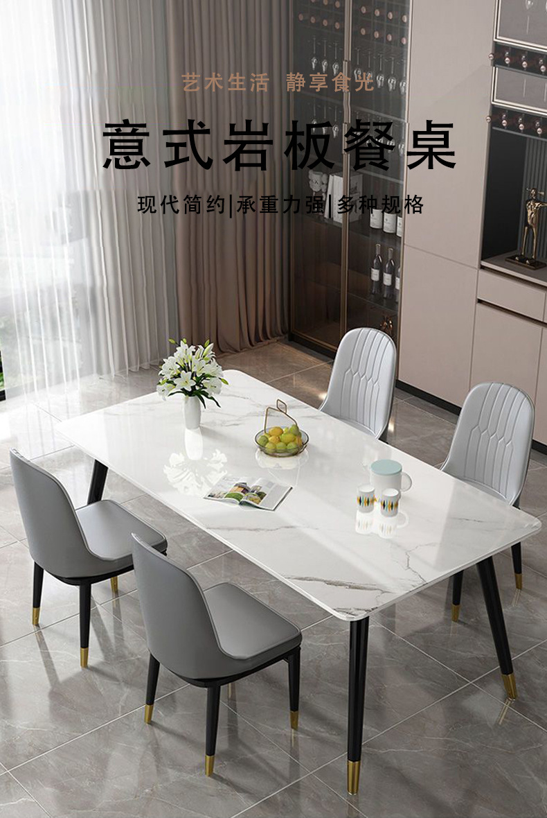 Los fabricantes de mesas de comedor de pizarra de roca modernas y simples suministran mesas de comedor rectangulares de apartamentos pequeños para el hogar, mesas de comedor de pizarra de roca al por mayor