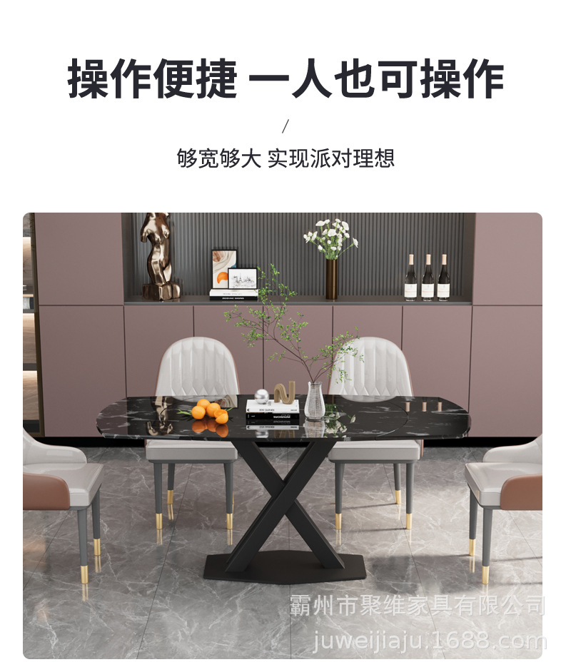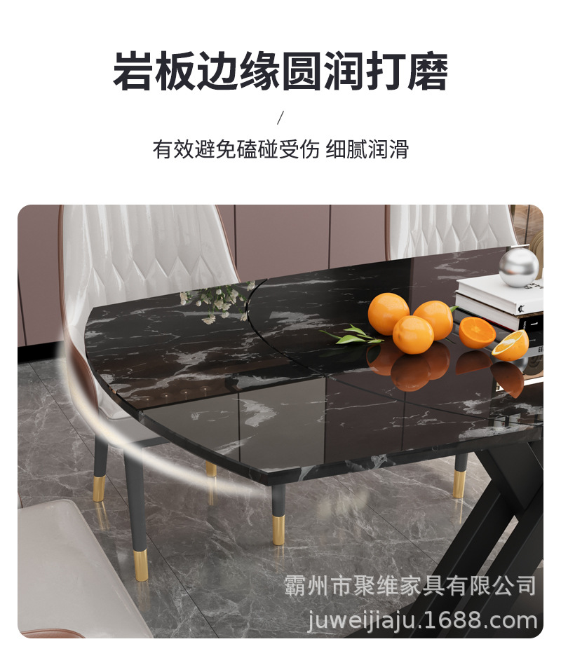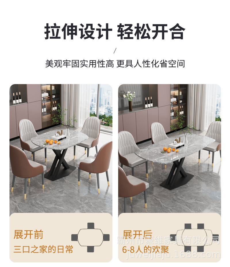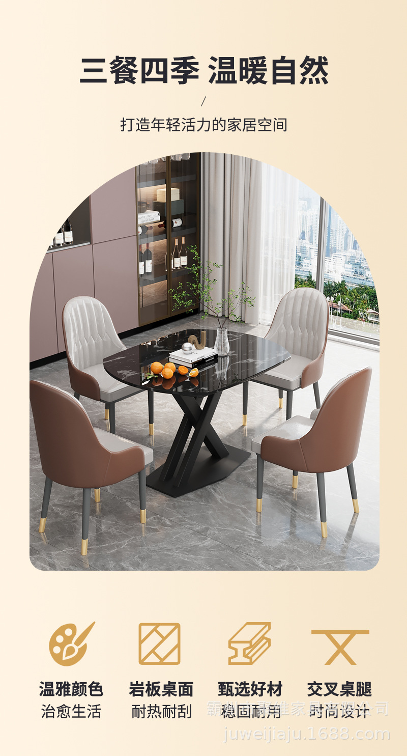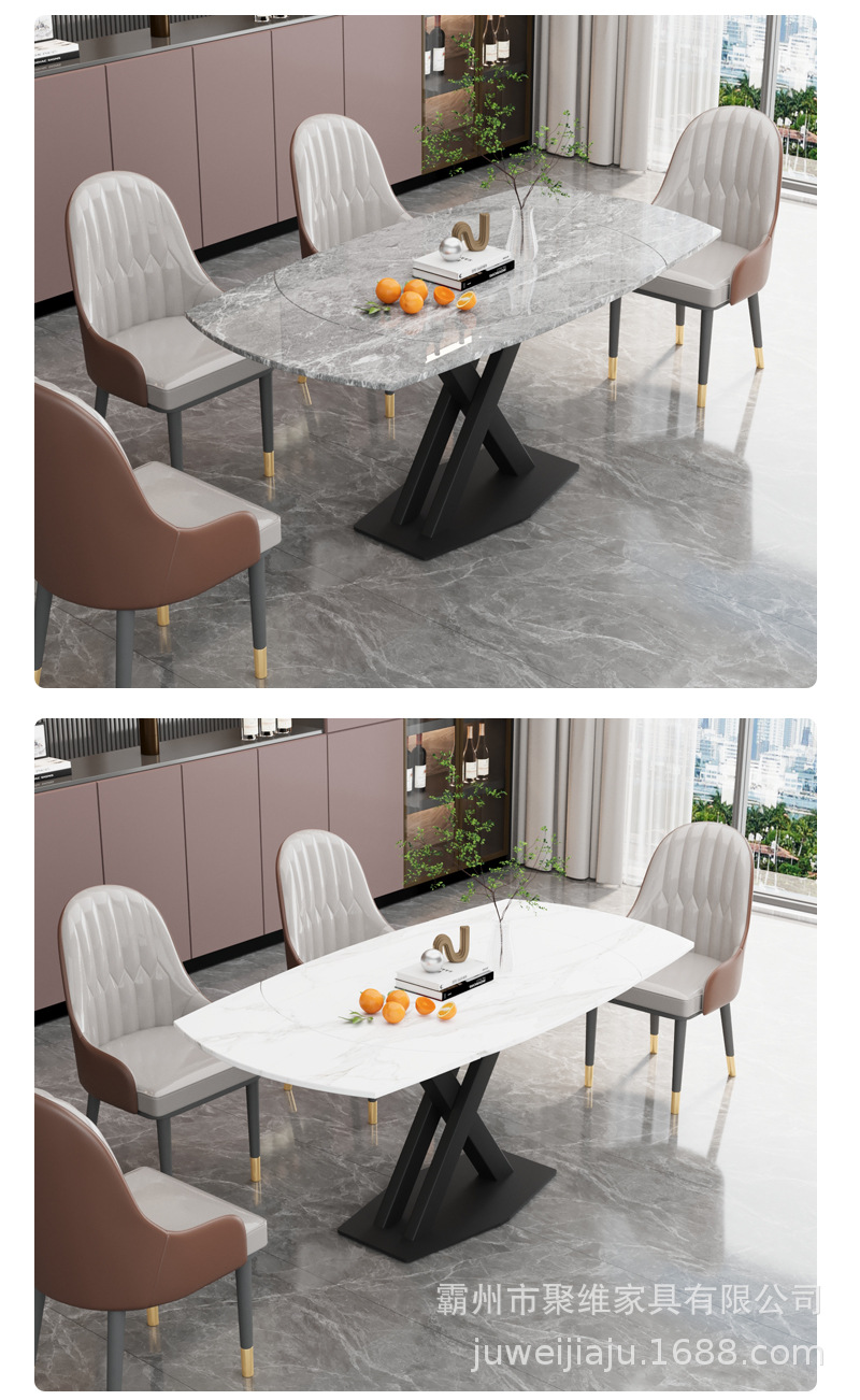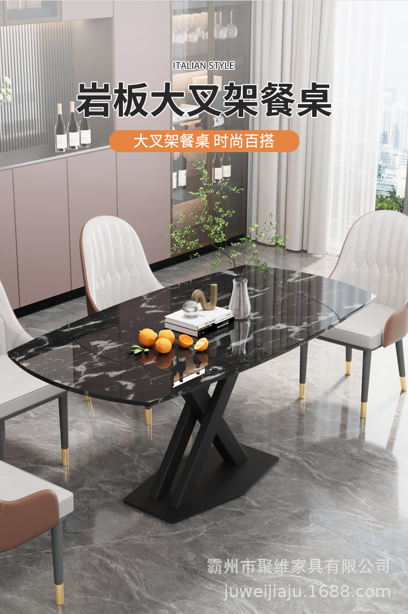 Mesa de comedor de placa de roca para el hogar italiano, apartamento pequeño, lujo ligero, mesa de comedor de acero al carbono rectangular de pierna cruzada moderna y sencilla de alta gama