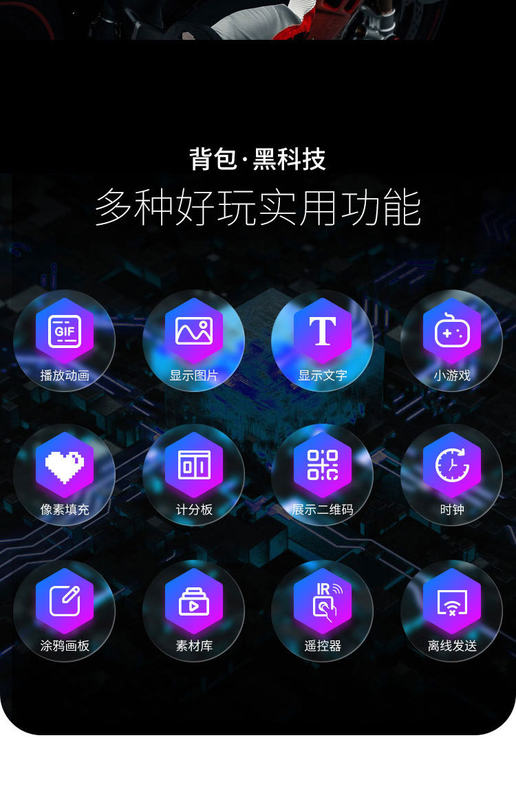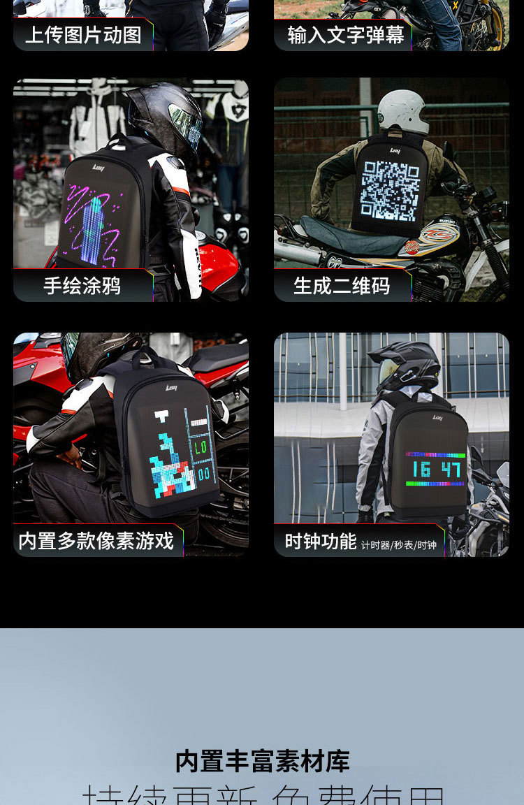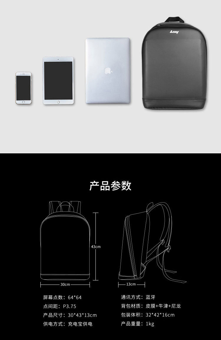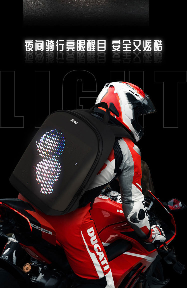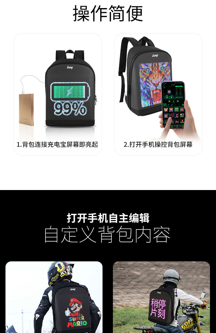 Cross-border street LED mochila de motocicleta mochila DIY patrón USB mochila de computadora de comercio exterior diseño reflectante