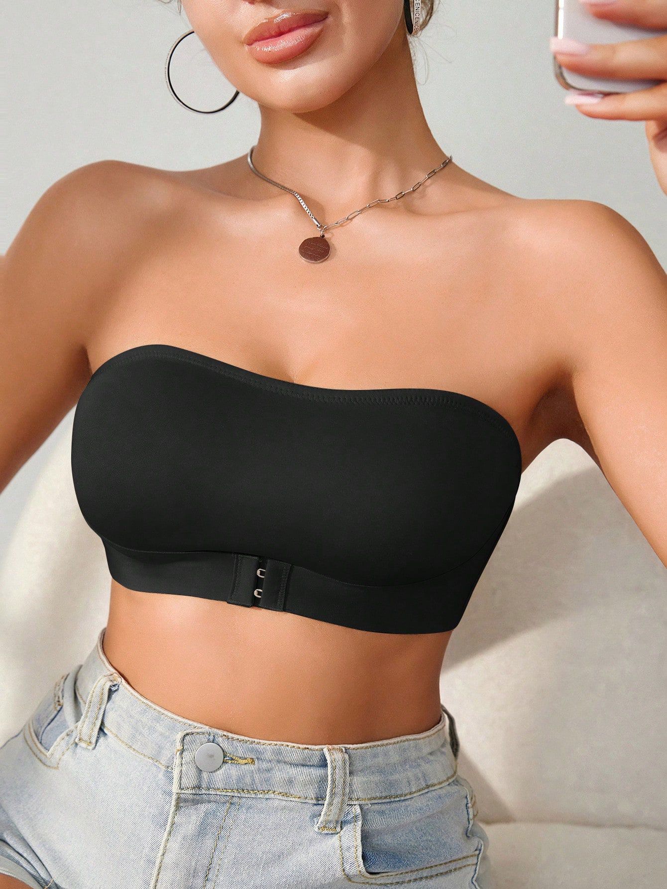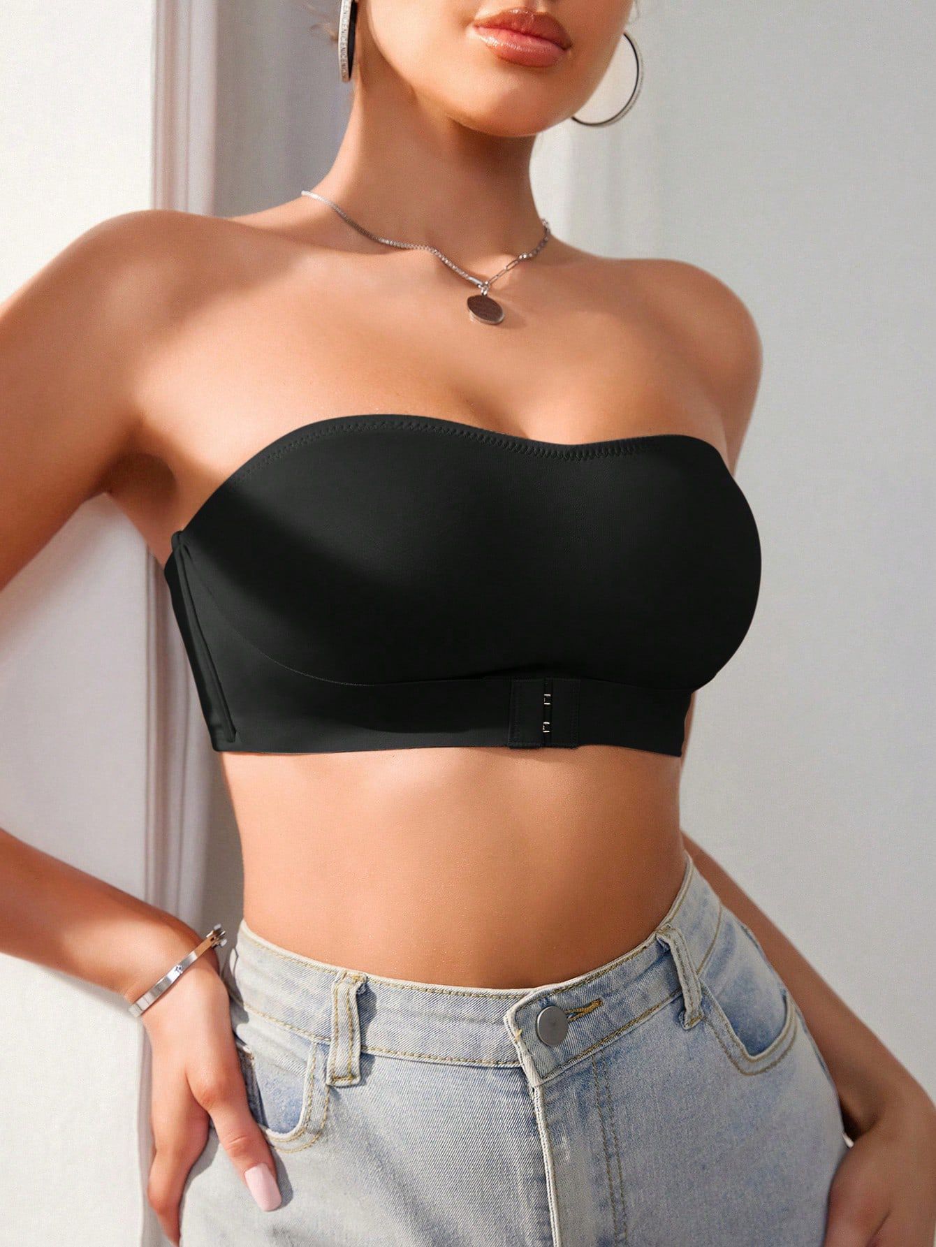 Hebilla delantera sexy, soporte lateral, top de tubo antideslizante para mujer, corsé ligero y transpirable, pecho pequeño, sujetador fruncido, sin tirantes
