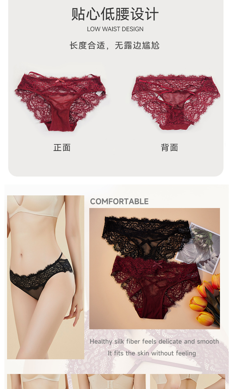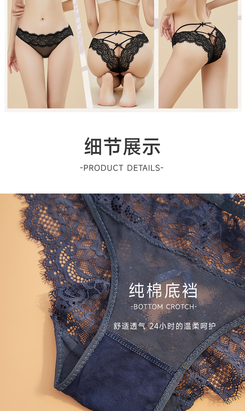Fábrica de ropa interior transfronteriza cintura baja ropa interior de mujer sexy encaje sexy ropa interior Tanga cruzada tentación transpirable mujeres