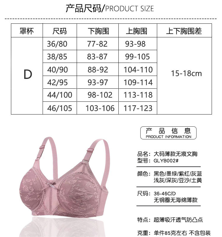 Gran tamaño de comercio exterior punto delgado sin esponja sin anillo de acero ropa interior mujer gran pecho pequeño se reúnen contra la caída del sujetador