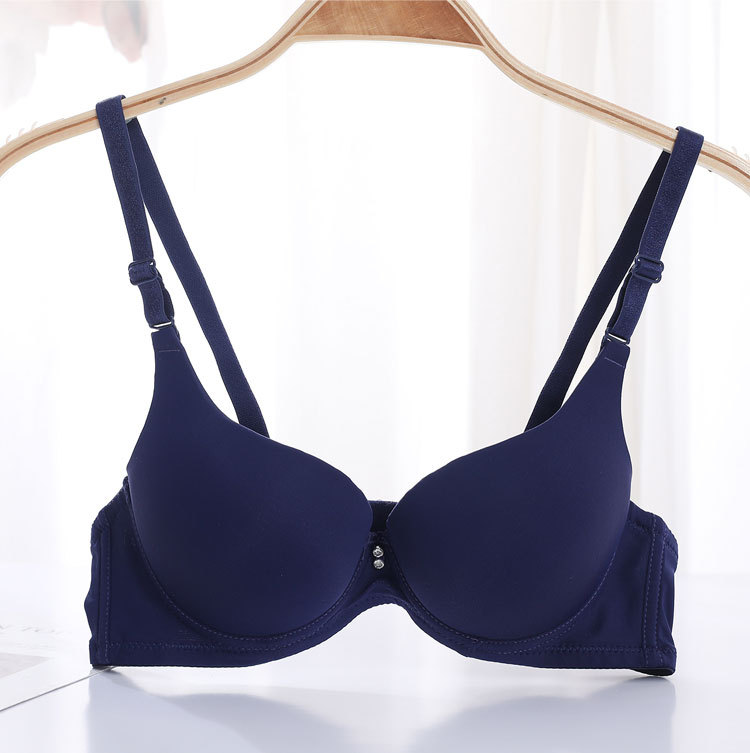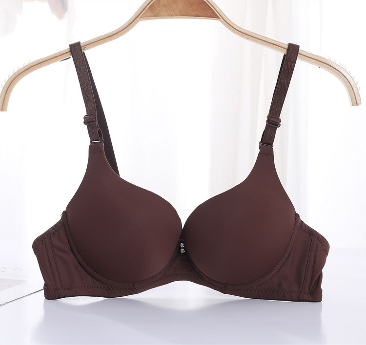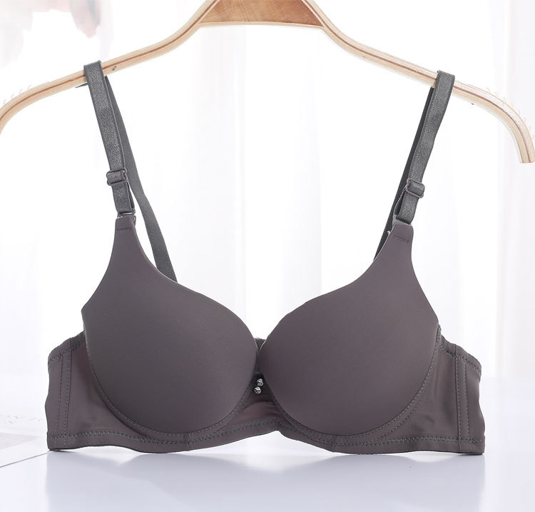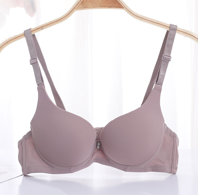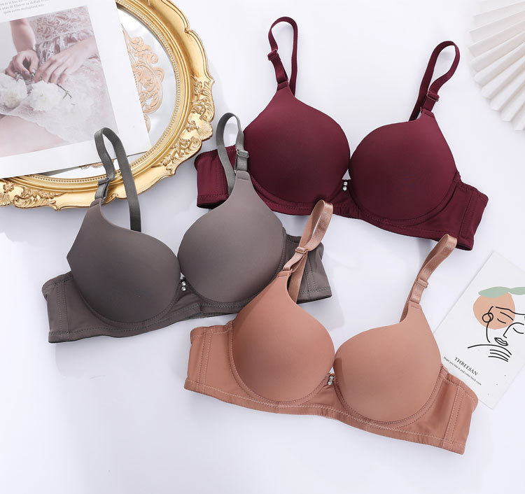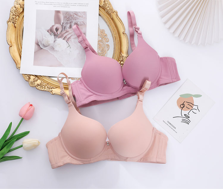 Fábrica de stock pequeño pecho grueso agrupado sujetador de acero anillo de acero ajustado tipo de ropa interior de mujer brillante sin marca sujetador
