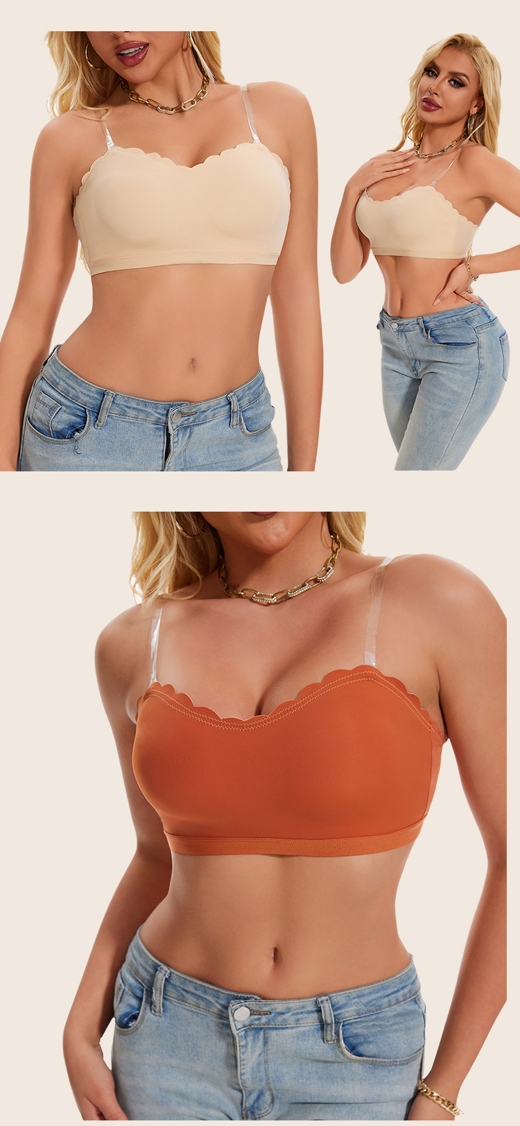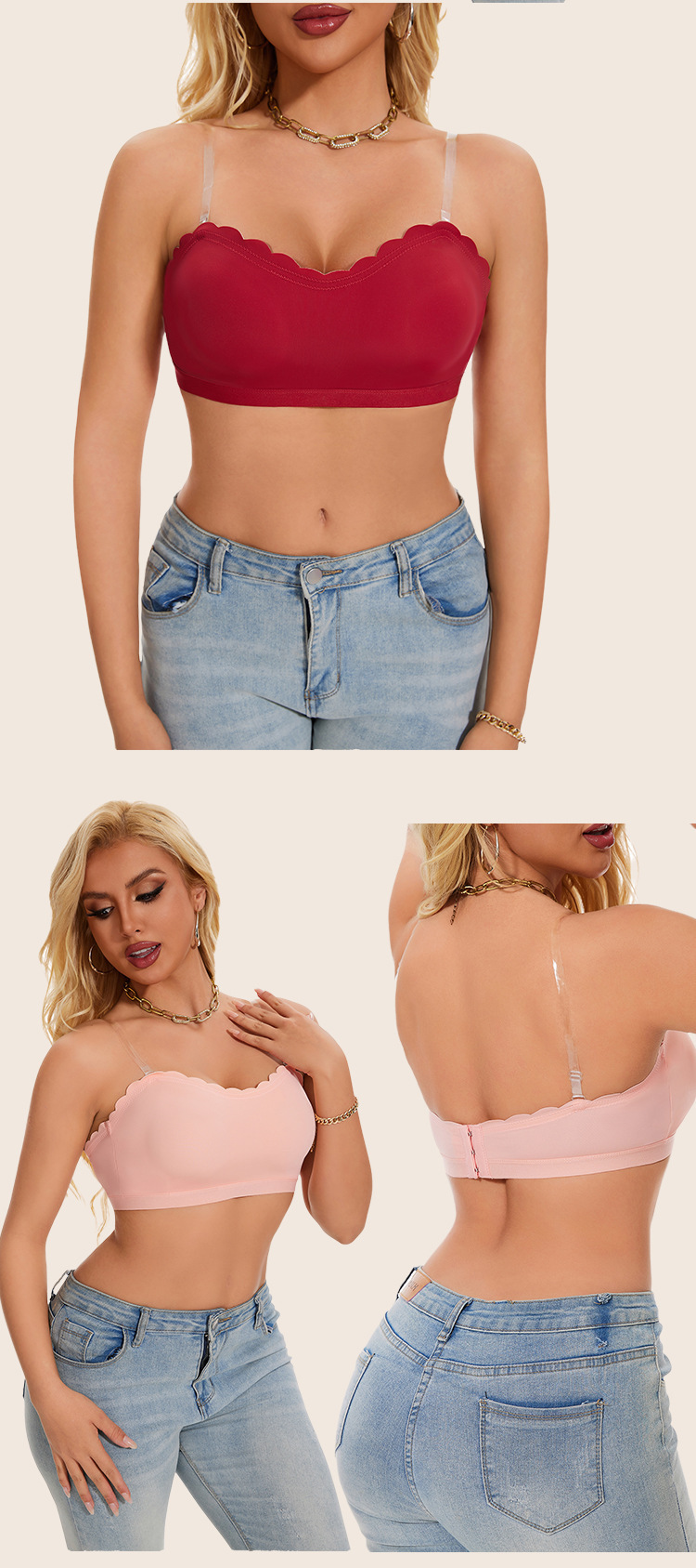 Comercio exterior Europa y América Amazon sin correa de hombro una palabra alrededor antideslizante belleza detrás de la hebilla base sostén damas envuelto en el pecho al por mayor
