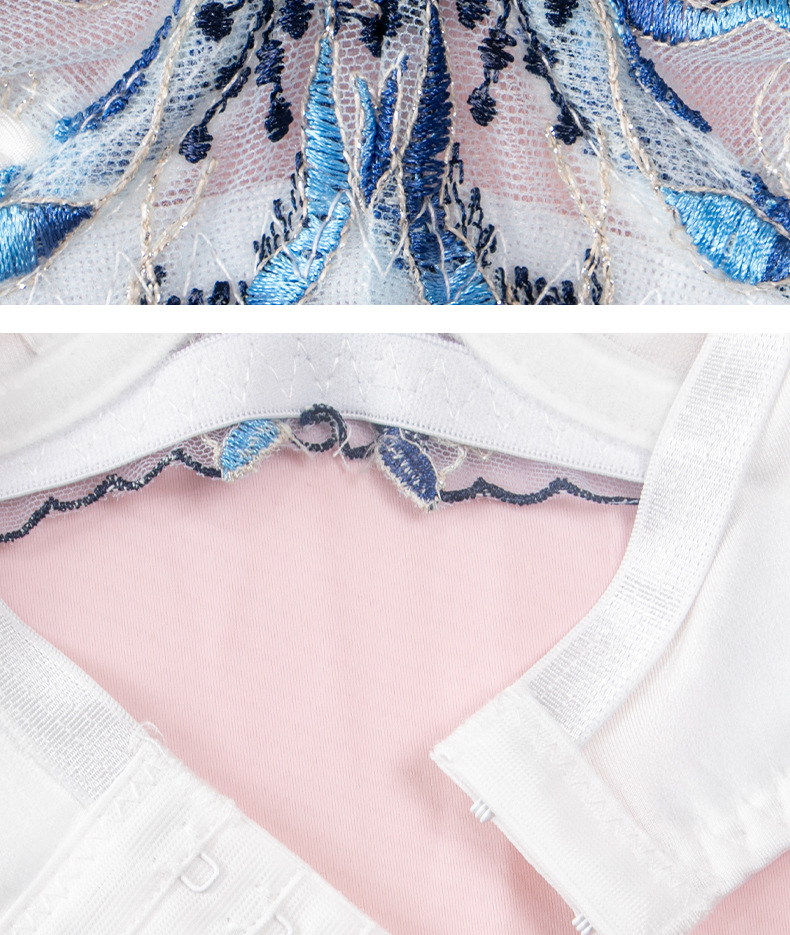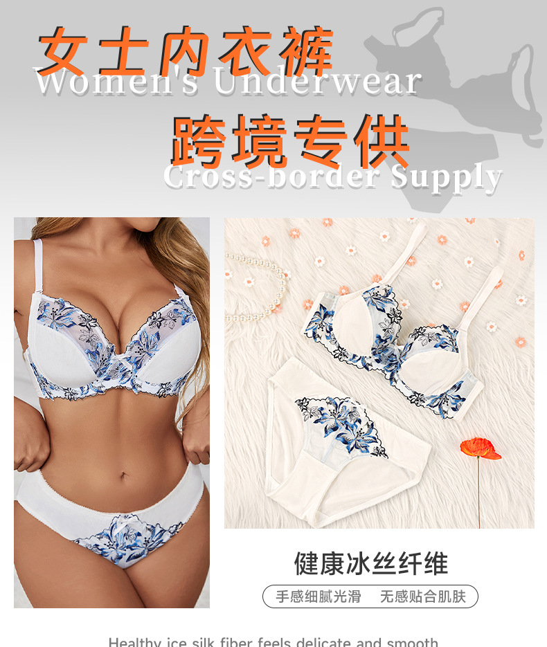 Conjunto de lencería sexy bordada con estampado para mujer con busto grande, efecto minimizador, realce, anticaída, transpirable, venta al por mayor transfronteriza de comercio exterior