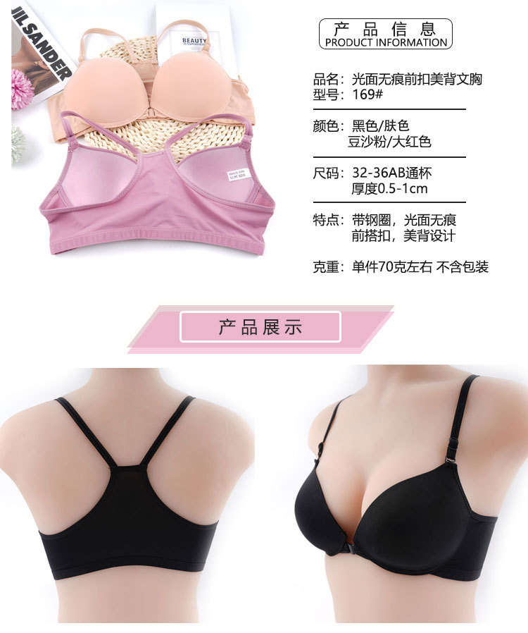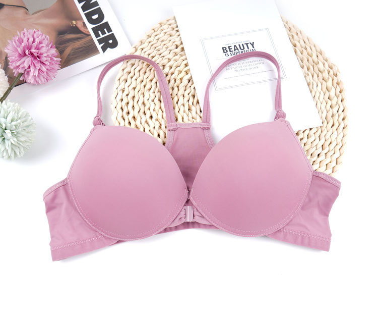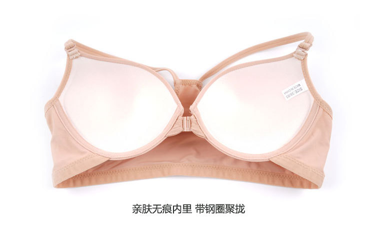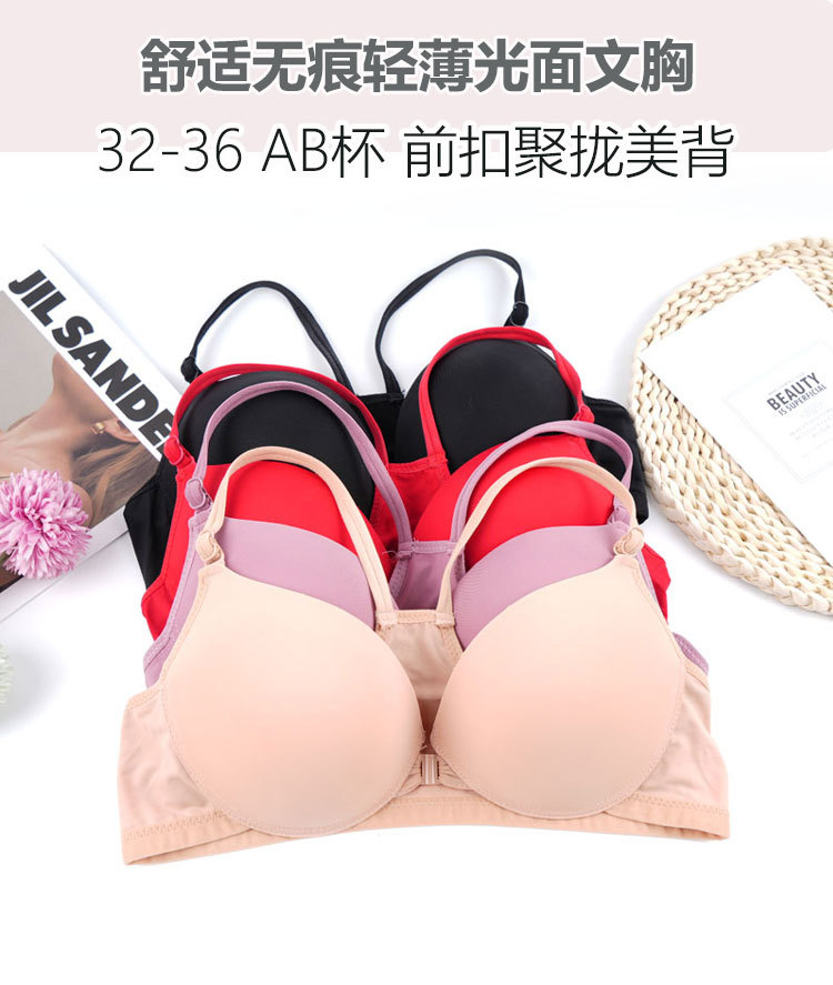 Sin anillo de acero, lazo delantero sexy, ropa interior de belleza, brillante, sujetador sin marcas, cómodo, sujetador pequeño anti-caída.