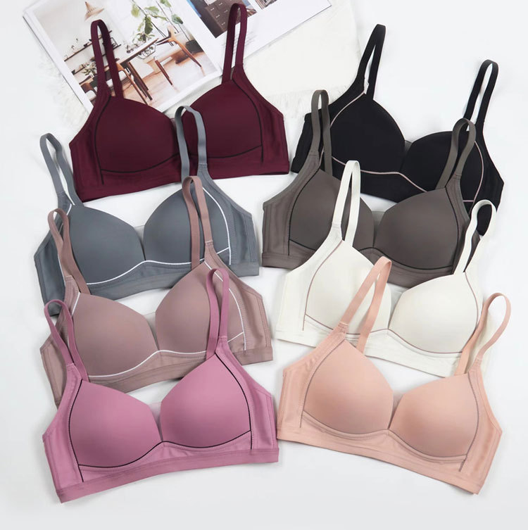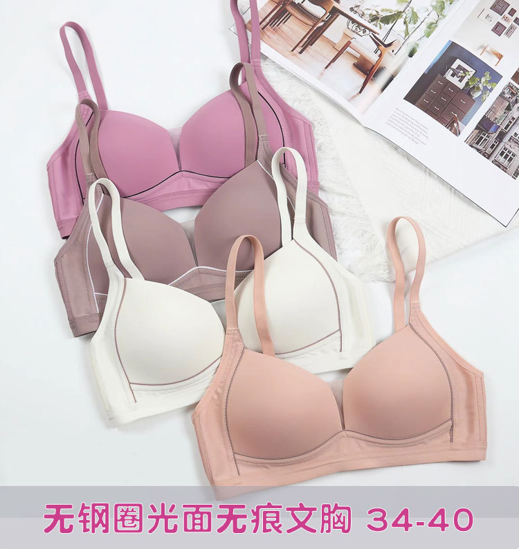 Fábrica de stock brillante sostén de damas delgado sin anillo de acero ropa interior cómoda sin marcas sobre el soporte para proteger contra la caída del sostén